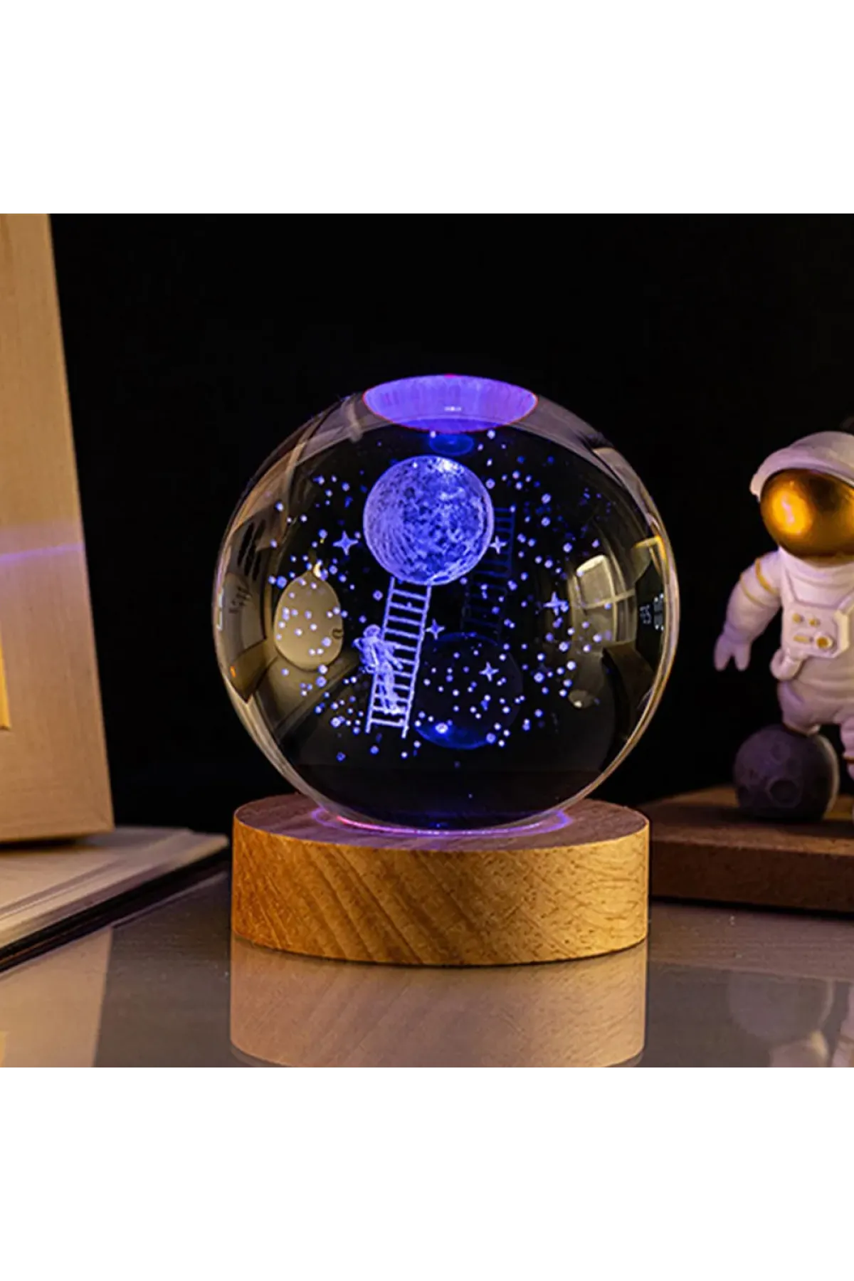 Dekoratif Merdivenli Astronot ve Ay Tasarımlı Işıklı Cam Küre