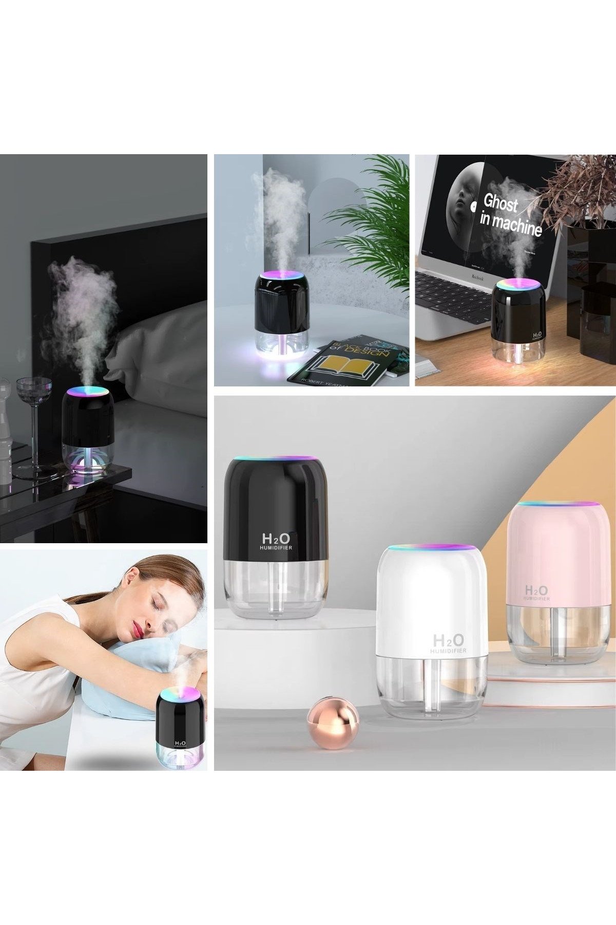 H2O Model Şeffaf Hazneli Hava Nemlendirici-Ultrasonik Soğuk Buhar Makinesi, LED Işıklı Masaüstü Oda Nemlendirici