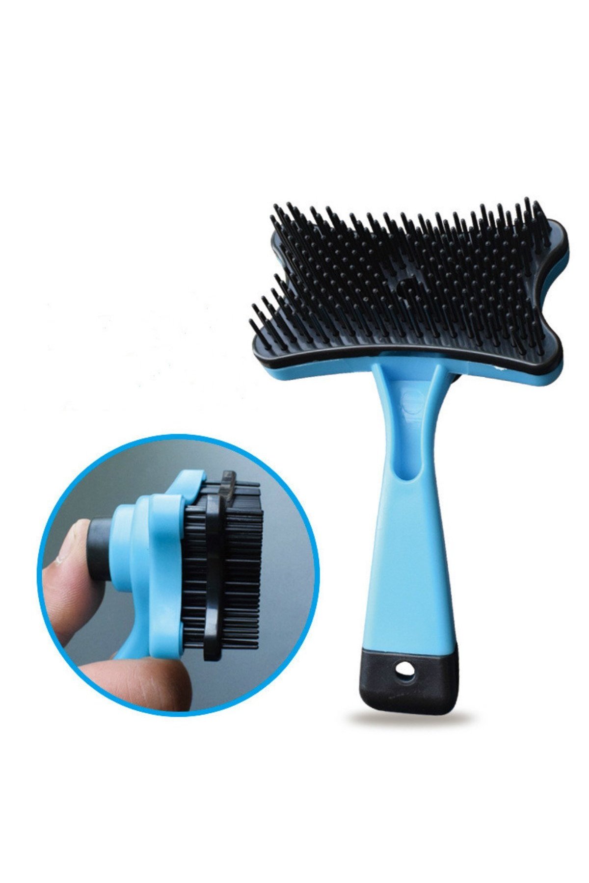Otomatik temizlenen tuşlu kedi köpek tarama fırçası, köpeklerinizin istenmeyen ve fazla uzamış tüylerini taradıktan sonra rahat ve kolay bir biçimde sıyırmaya yarayan bir alettir Üstte bulunan tuşa bastığınızda telli kısımlarının çıktığı bir tarak olan bu alet, ev hayvanlarınızın karışan tüylerini kolaylıkla açabilmektedir Bununla birlikte tellerin mekanizmanın içine geri girmesiyle, taranılan tüylerden dökülenler de kolayca çöpe atılabilmektedir