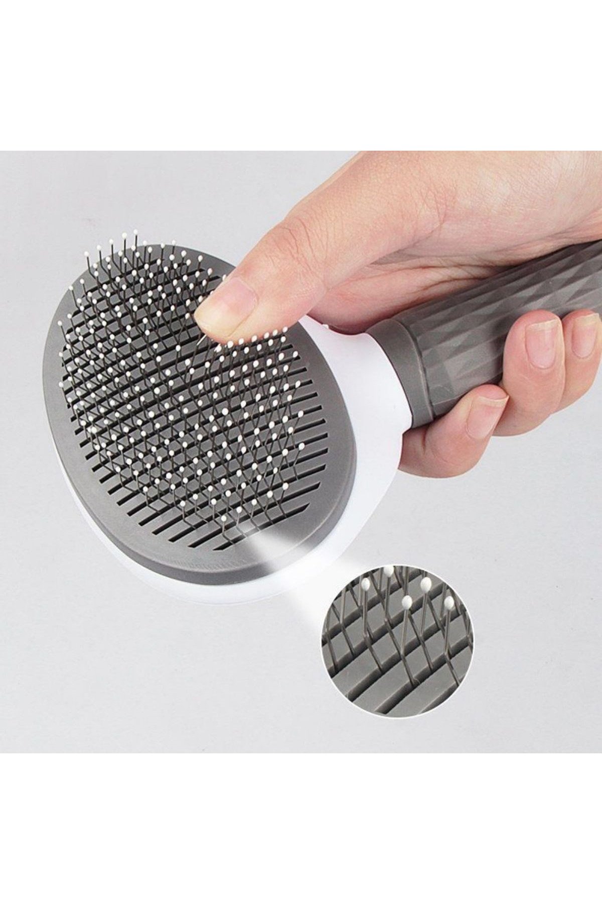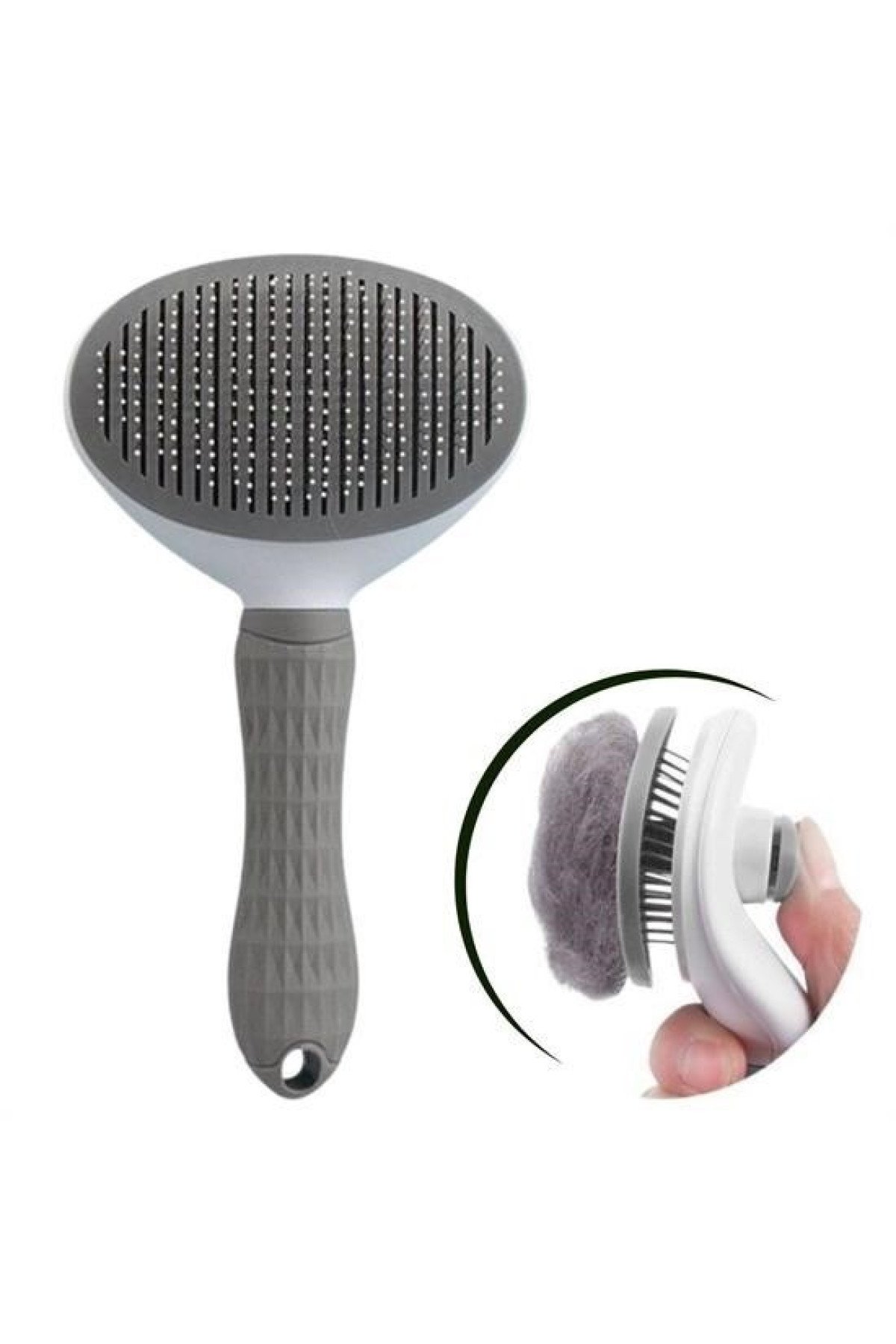 Kedi Köpek Tüy Toplayıcı Kendini Temizleyebilen Ergonomik Saplı Evcil Hayvan Tarağı - Gri