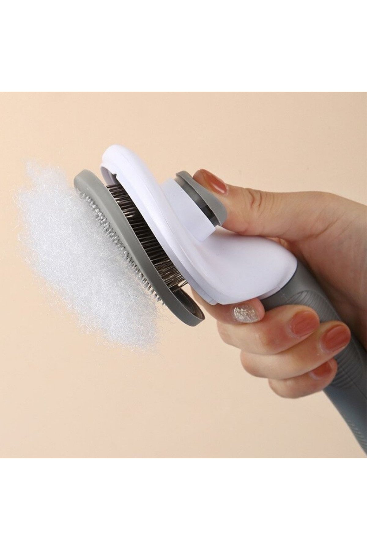Kedi Köpek Tüy Toplayıcı Kendini Temizleyebilen Ergonomik Rahat Evcil Hayvan Tarağı Gri