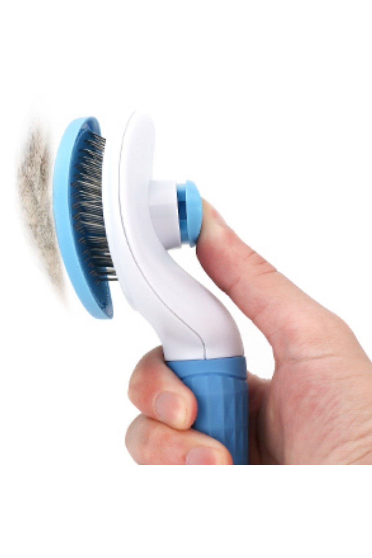 Kedi Köpek Tüy Toplayıcı Kendini Temizleyebilen Ergonomik Saplı Evcil Hayvan Tarağı - Mavi