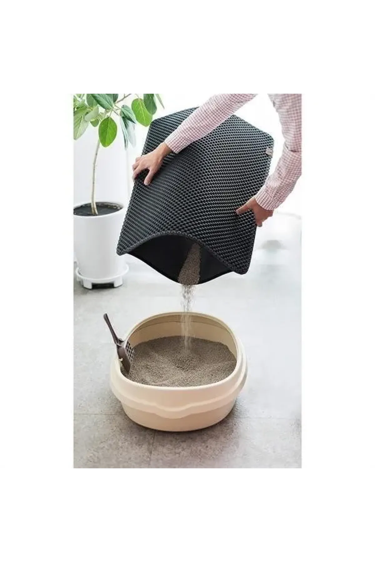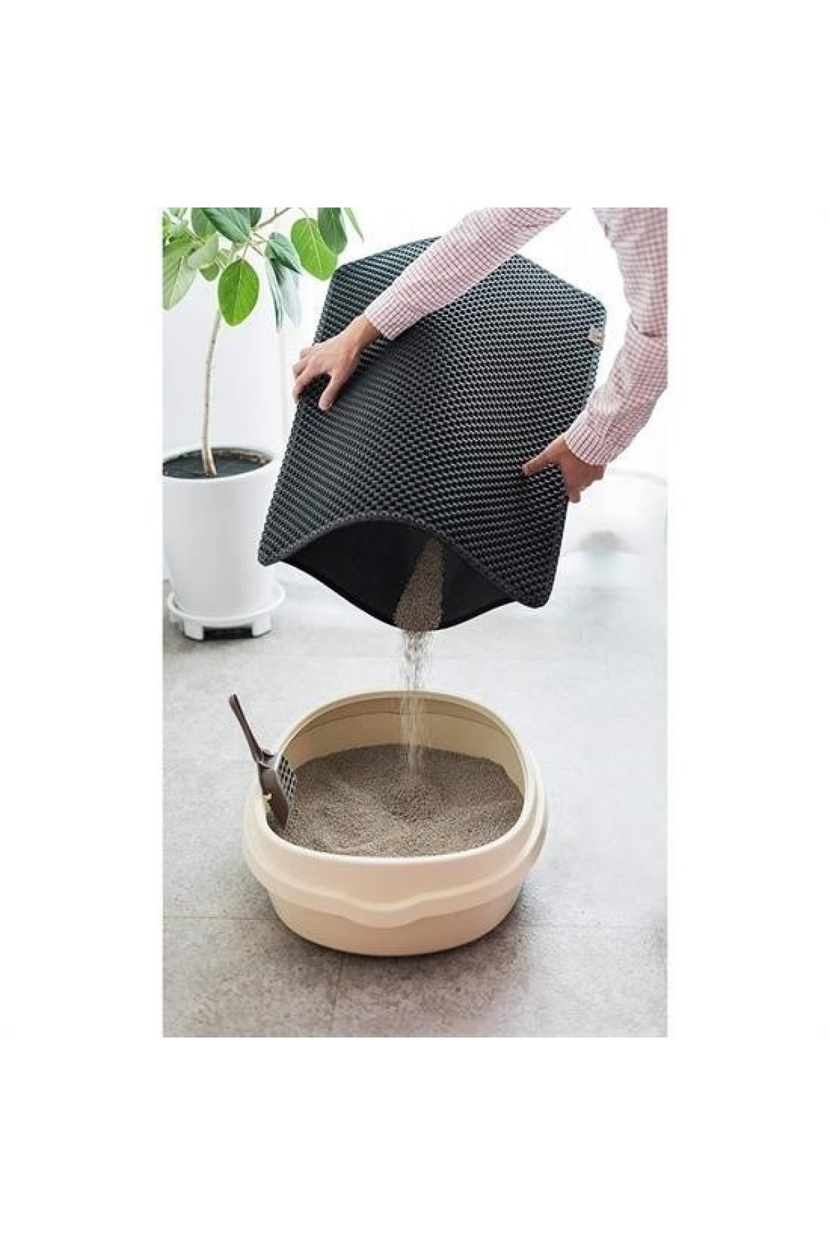 Tırnaklarının arasından düşen kumlar Kedi Tuvalet Önü Paspası kesesiiçinde birikir Bir süre sonra silkeleyerek içerisini temizleyebilirsiniz