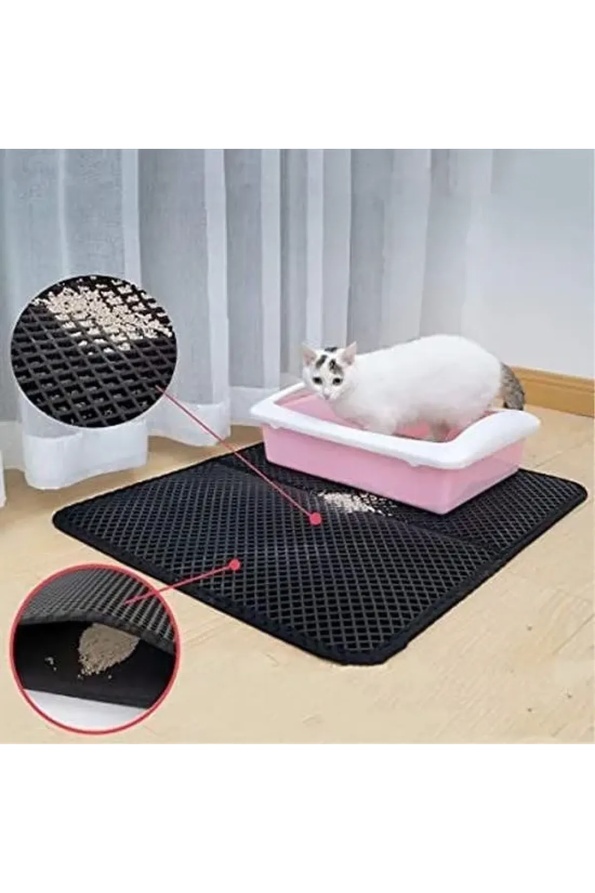 Kedinizin tuvaletetini yaptıktan sonra tırnaklarının arasındaki kumları temizleyebileceği elekli tuvalet önü paspası sayesinde kedinizde siz de daha mutlu