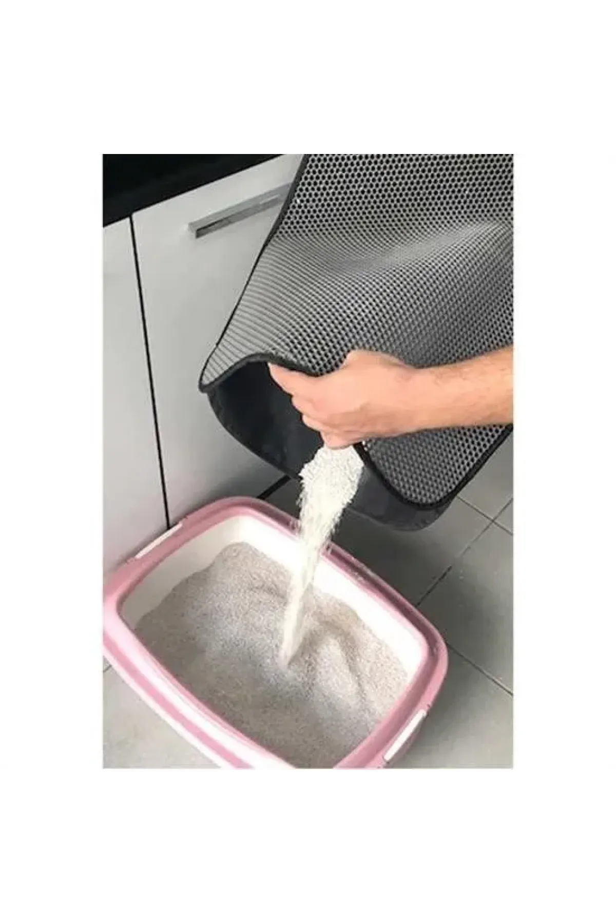 Tuvalet kabını kullanan evcil dostunuz, kabının önüne koyacağınız elekli paspasa tırnaklarını geçirerek arasındaki kumları temizler