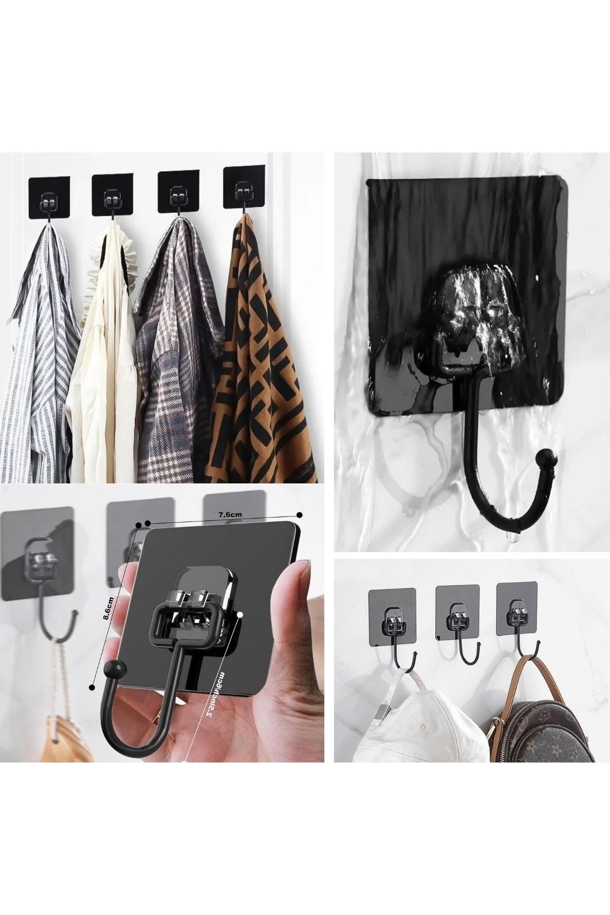 10 Adet Güçlü Yapışkanlı Siyah Duvar Askısı – Delmeden, Vida Kullanmadan Pratik Çözüm!