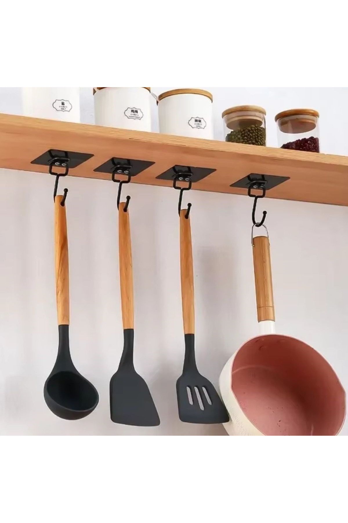 10 Adet Duvara, Dolapa Yapışan Güçlü Yapışkanlı Siyah Duvar Askısı