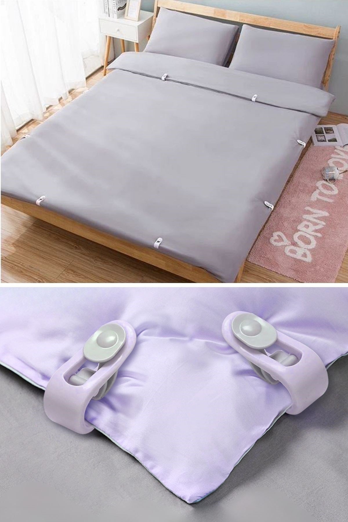 Kaydırmaz Sabitleme: İğnesiz Yorgan Çarşaf ve Perde Tutucu Sabitleyici Klips, yorgan çarşafınızın veya perdelerinizin kaymasını engellemek için etkili bir çözümdür. Klipsler, yatak çarşaflarınızı veya perdelerinizi sıkıca tutarak yerinden oynamasını önler. Bu sayede yatak veya perde düzeninizi koruyabilirsiniz.