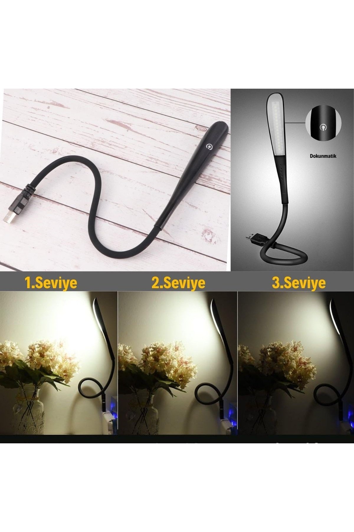 USB Girişli 14 Ledli 3 Kademeli Dokunmatik Masa/Kitap Okuma Lambası Ledi Siyah