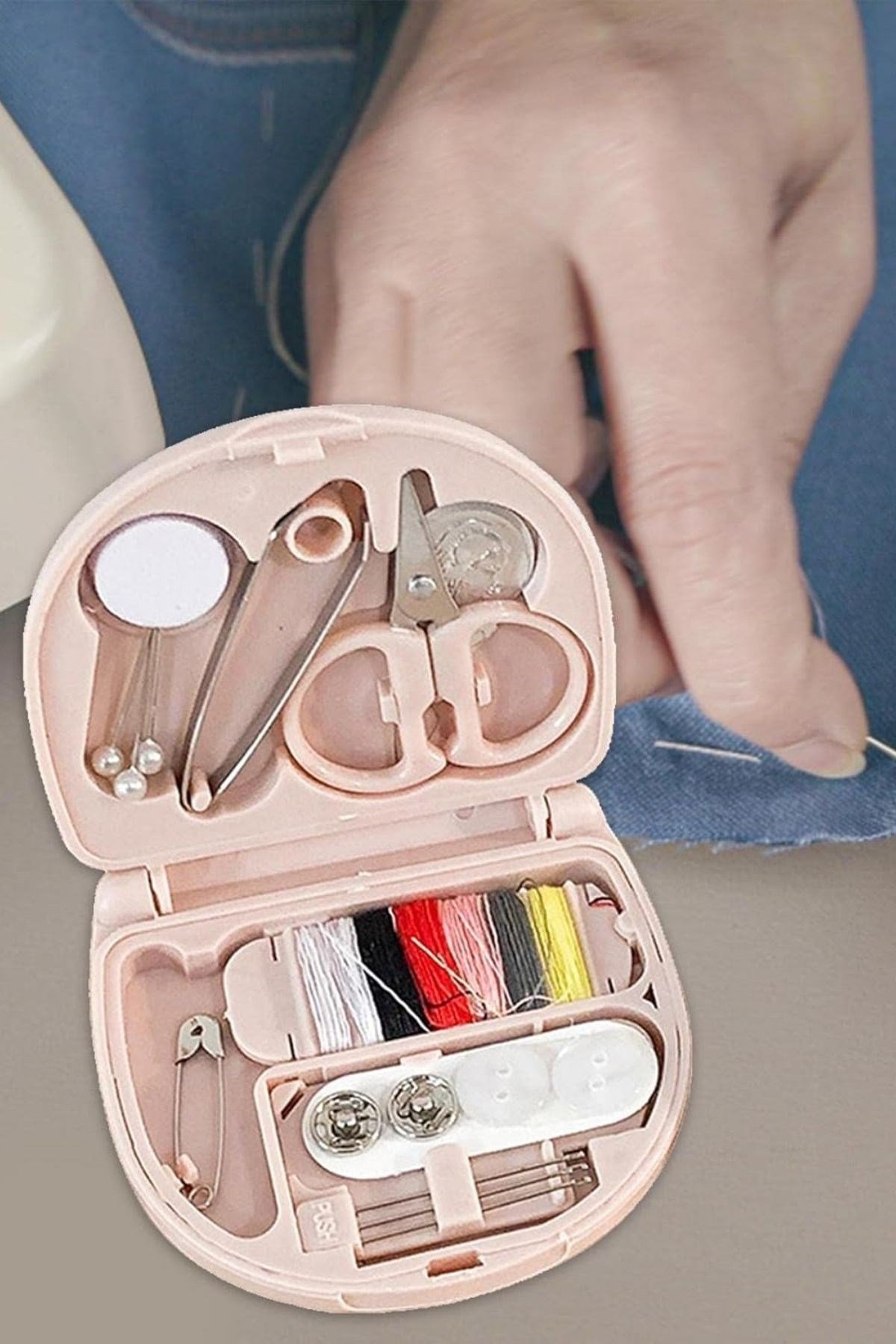 ? Her an, her yerde pratik dikiş çözümleri! Mini Seyahat Tipi Dikiş Seti, çanta boyu kompakt tasarımı ile acil durumlarda dikiş tamiri yapmanız için ihtiyacınız olan her şeyi bir araya getirir.