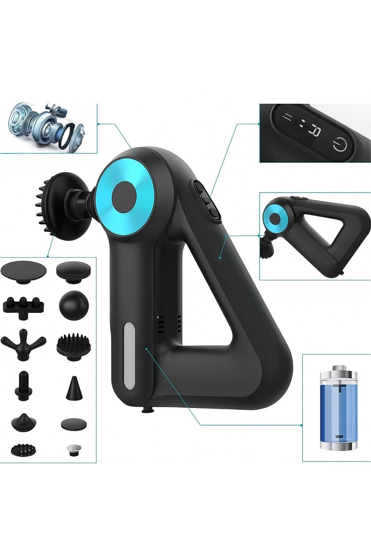 12 Farklı Başlıklı Profesyonel Masaj Tabancası - Kas Gevşetici ve Yorgunluk Giderici Masaj Aleti