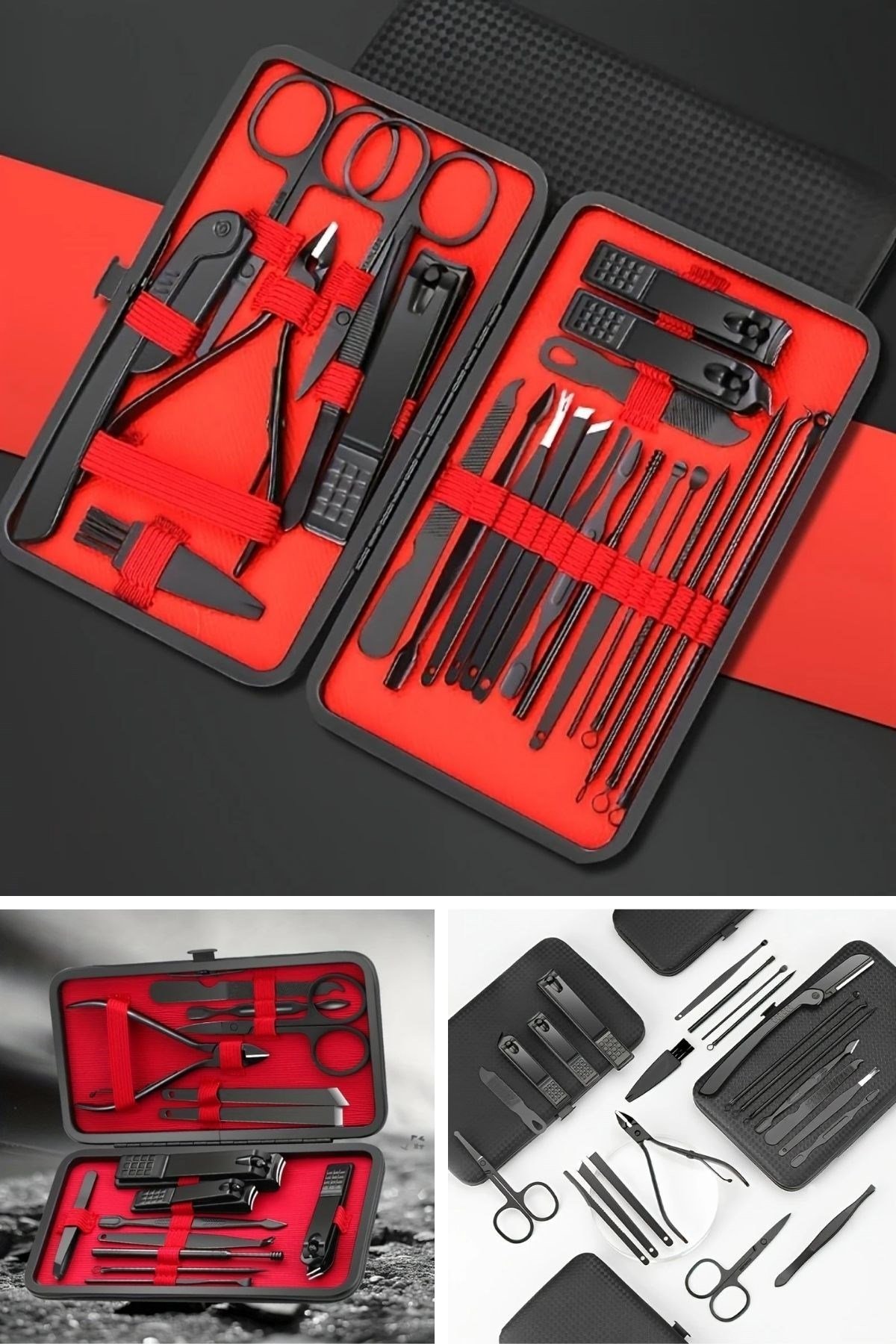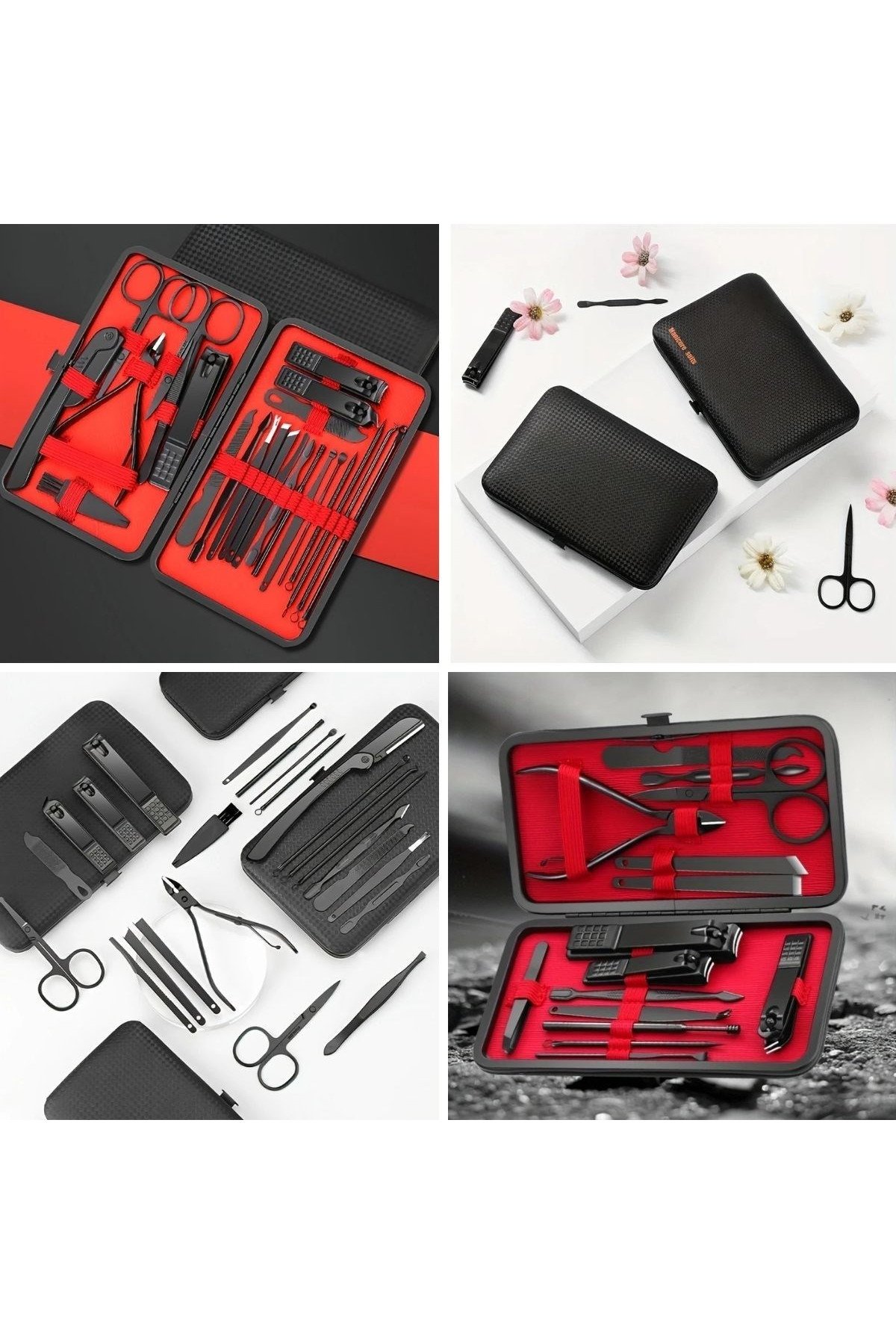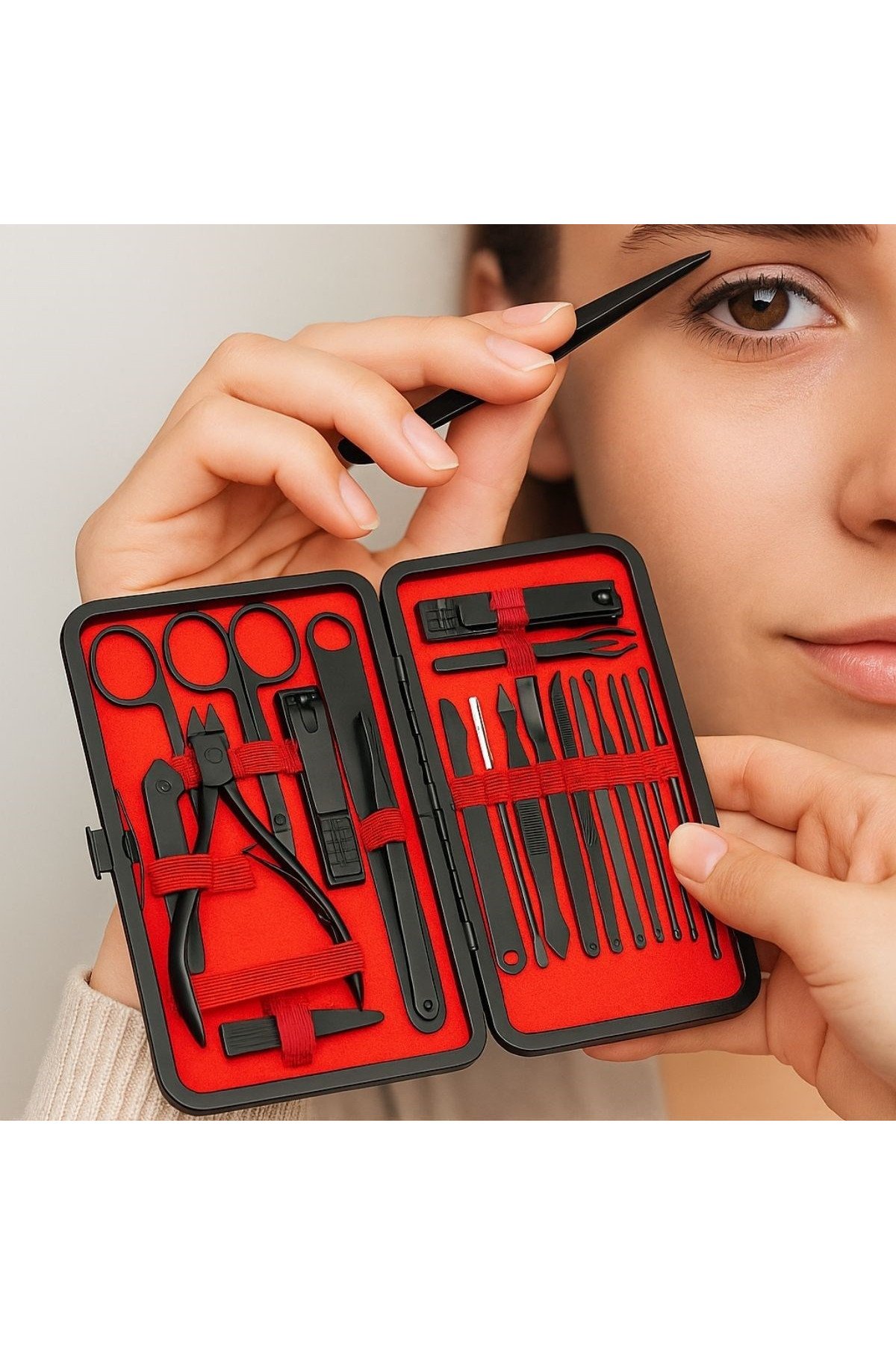 24 Parça Çok Amaçlı İçerik: Tırnak makası, törpü, cımbız, makas, kulak temizleyici, sivilce çıkarıcı, tırnak eti aparatı ve daha fazlası.