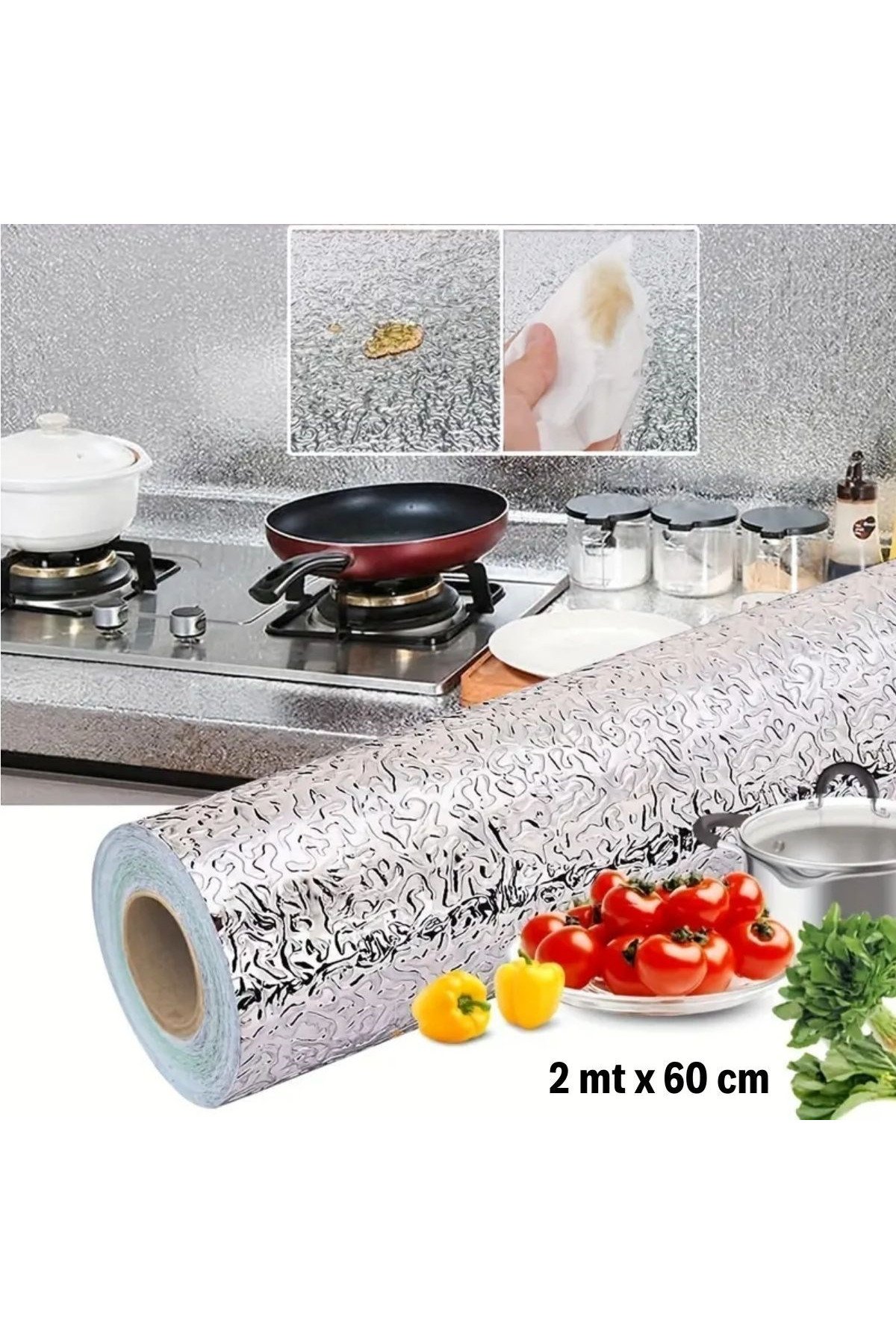 - 1 adet 2 metre x 60 cm Gümüş Alüminyum Folyo Duvar Kağıdı
