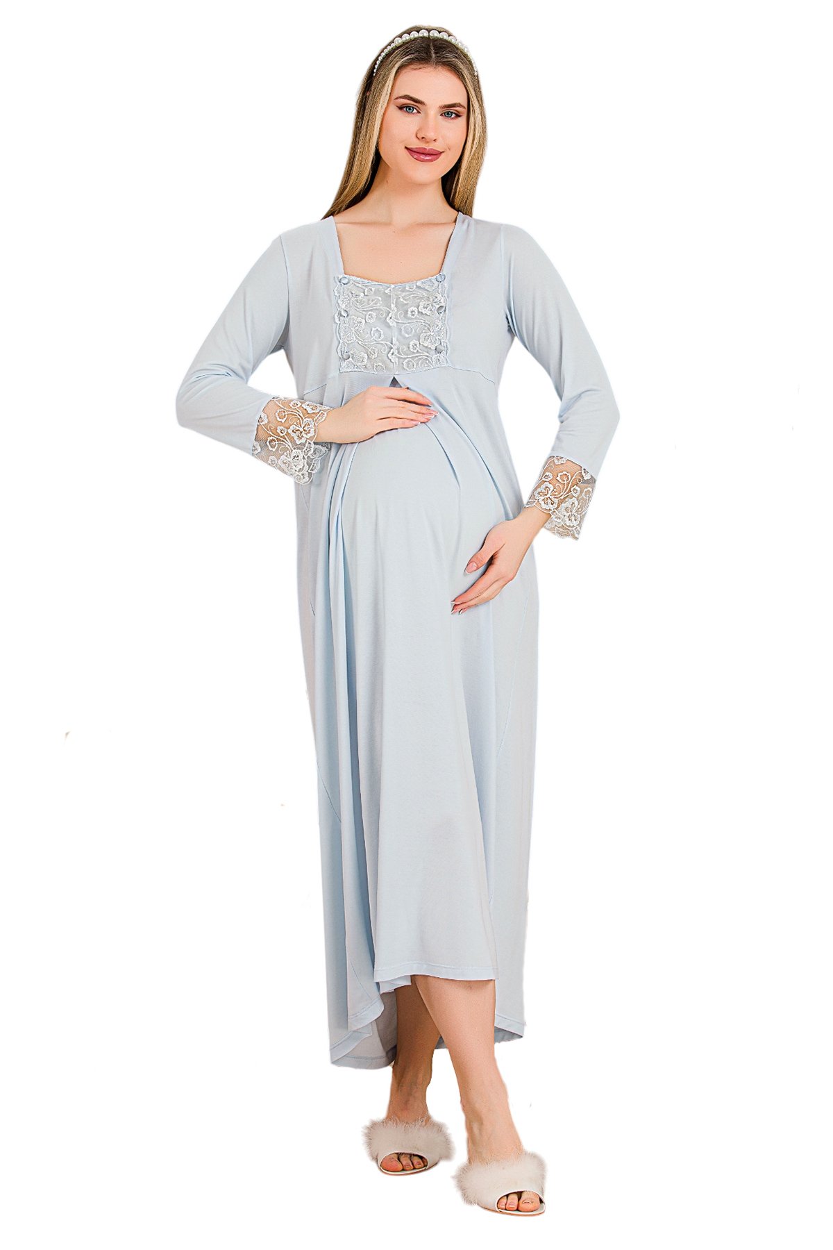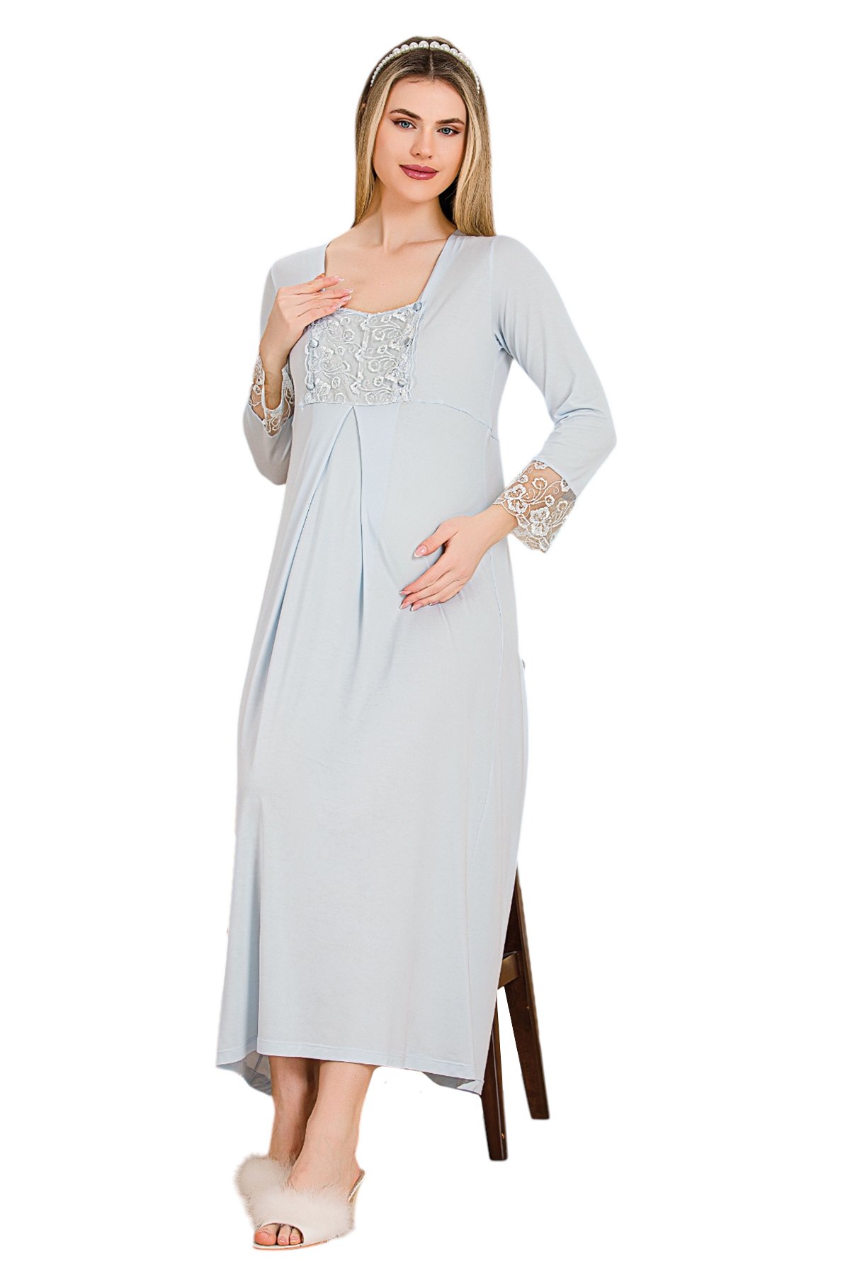bebek mavi renkli derin patlı,lohusa gecelik takımı, tek lohusa gecelik, dantelli lohusa gecelik, 2 parça lohusa seti, hamile gecelik, kolay emzirme geceliği, Lady lohusa, uzun lohusa gecelik, en şık lohusa gecelikleri, pamuklu lohusa gecelik, 33402 lohusa hamile gecelik,