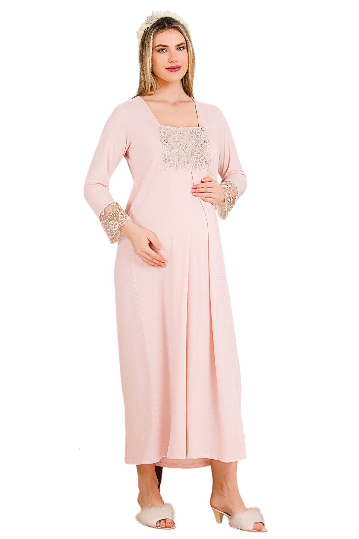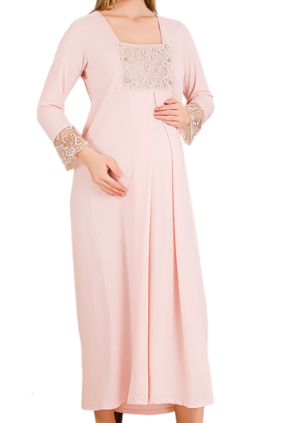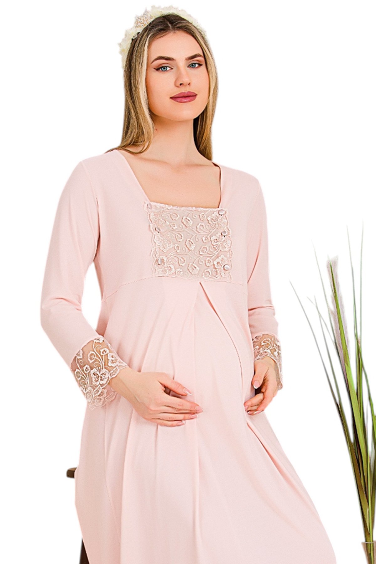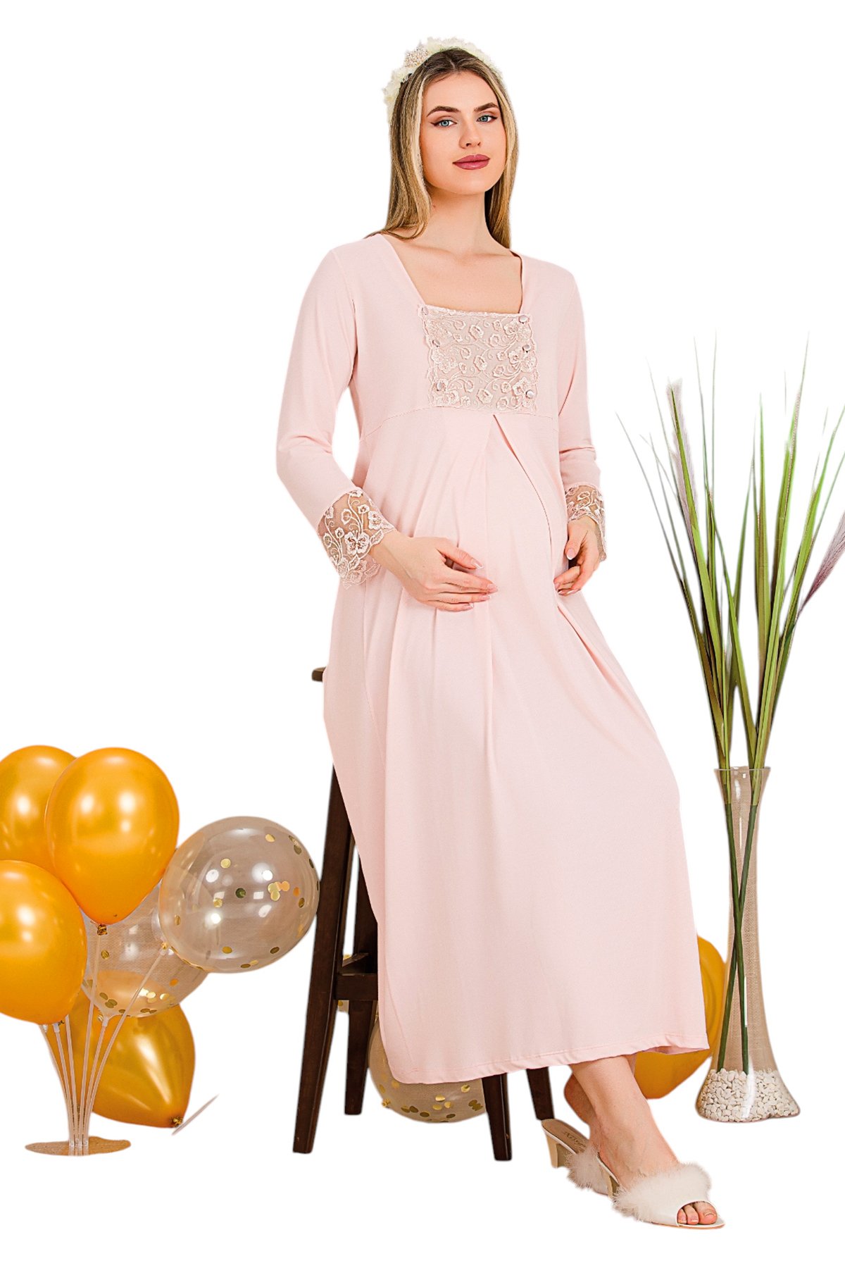 Bebek Pembe Renkli Dantel Detaylı 33402 Lohusa/Hamile Gecelik - Kolay Emzirme | QuillingSeti.com