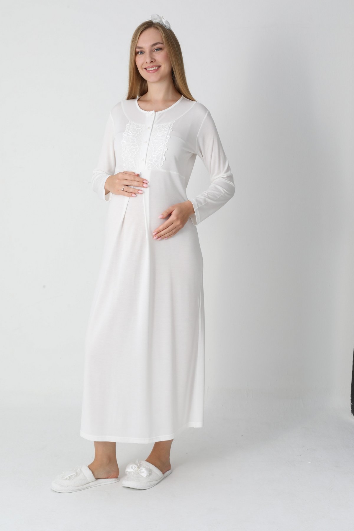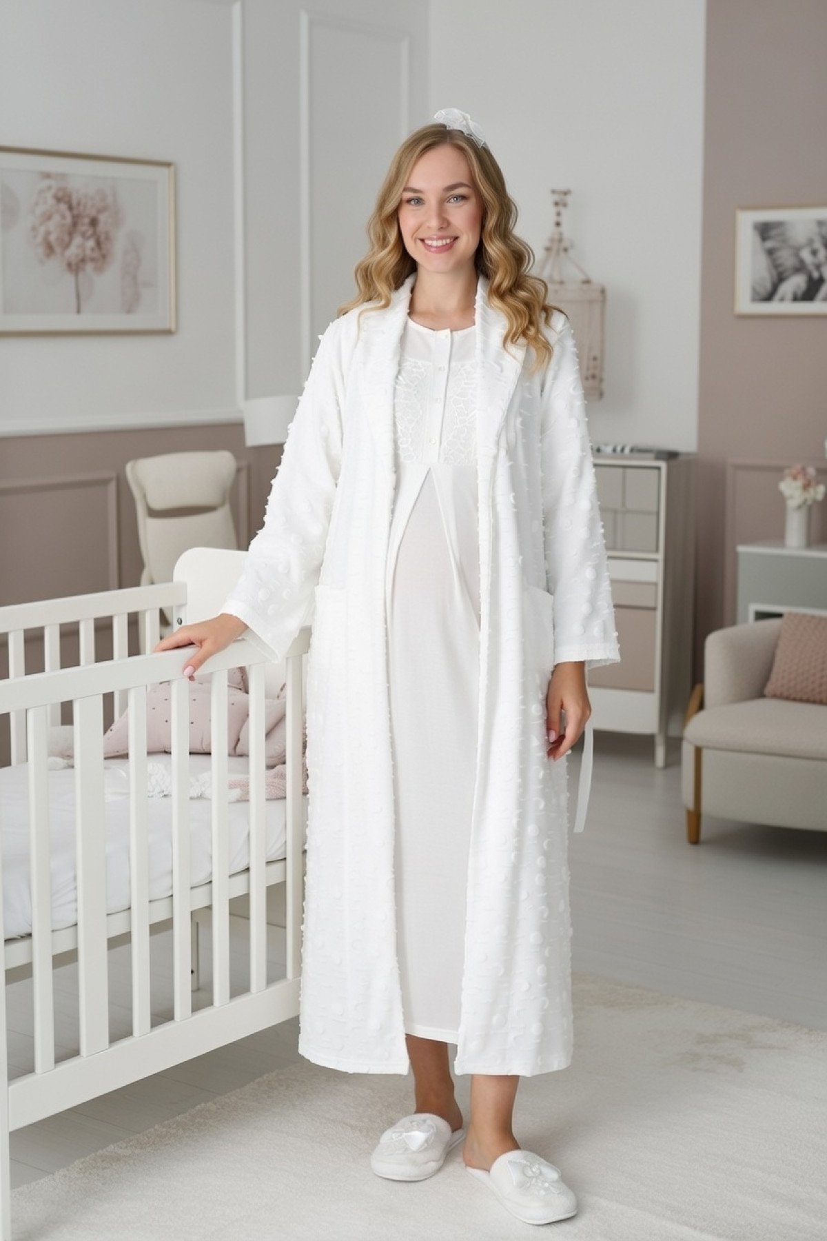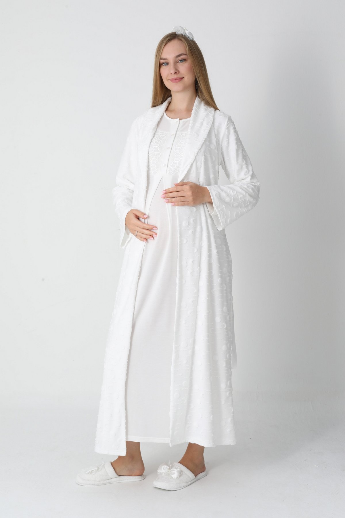 2 Parça Dantel Detaylı Erdeniz Sabahlıklı Hamile Gecelik Tak..