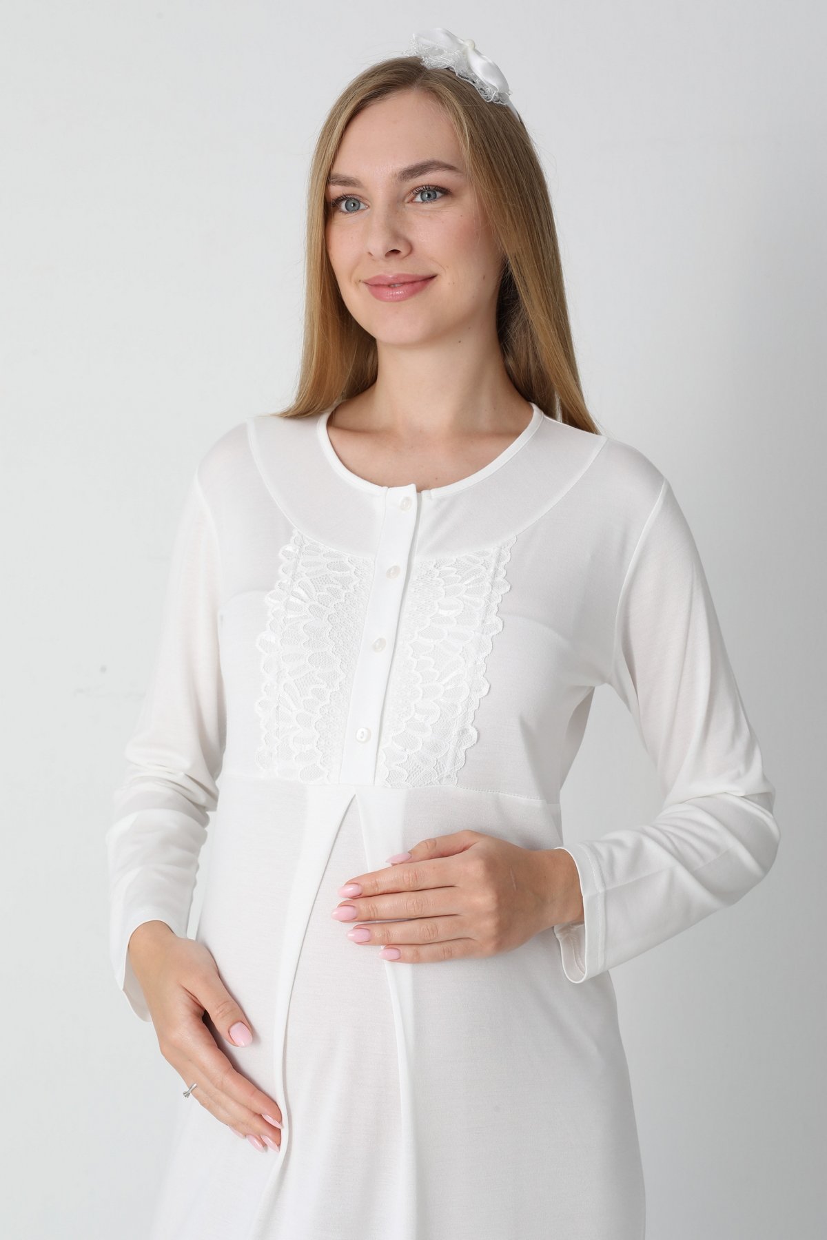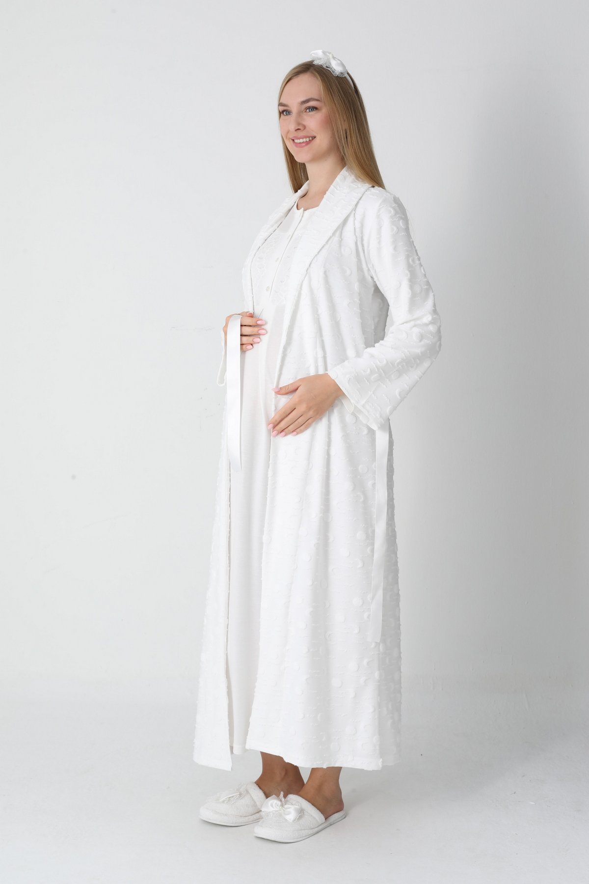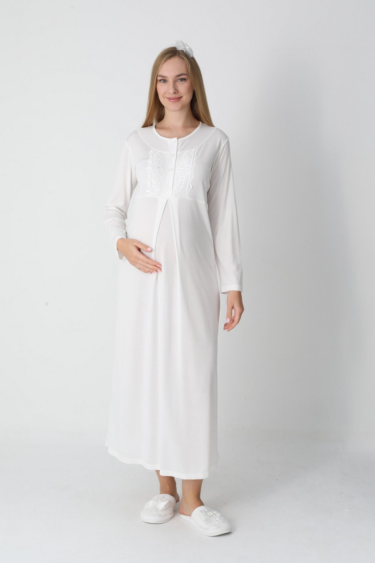 2 Parça Dantel Detaylı Erdeniz Sabahlıklı Hamile Gecelik Tak..
