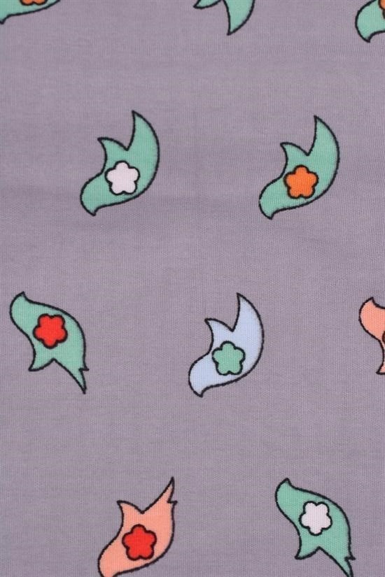 - Kuş Deseni: Gri kumaş zemini üzerine renkli kuş baskılarıyla şık bir tasarıma sahiptir.