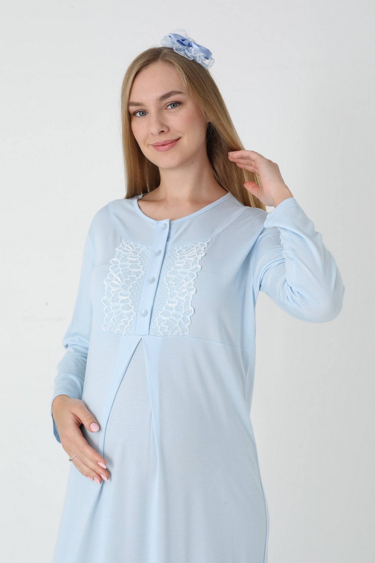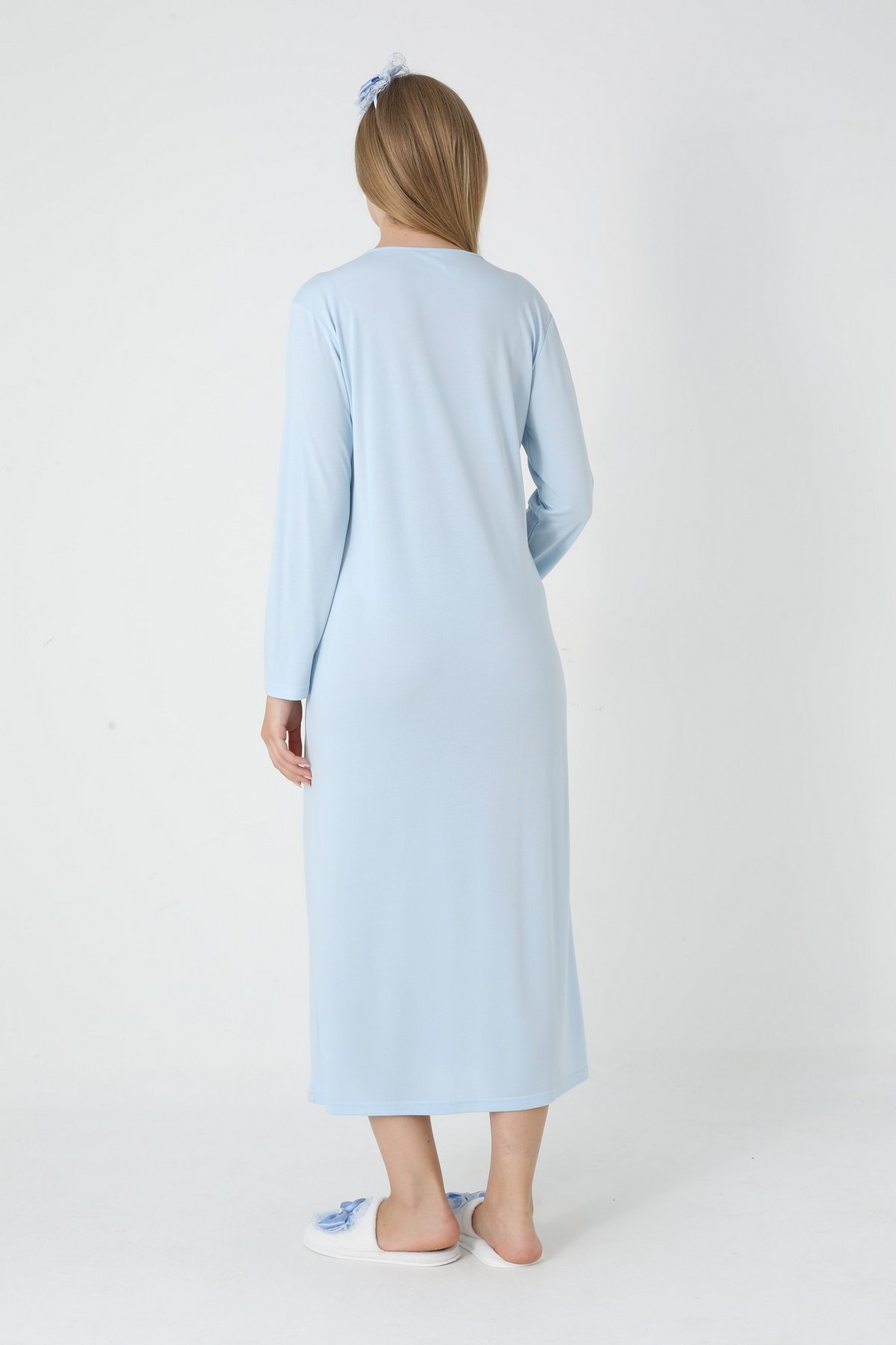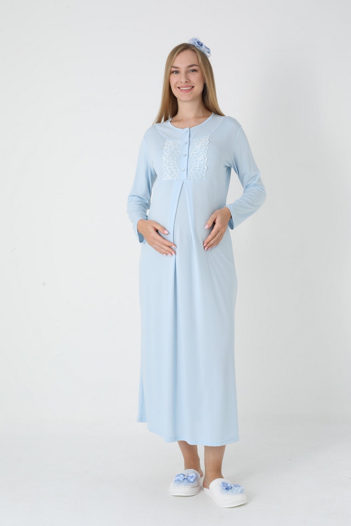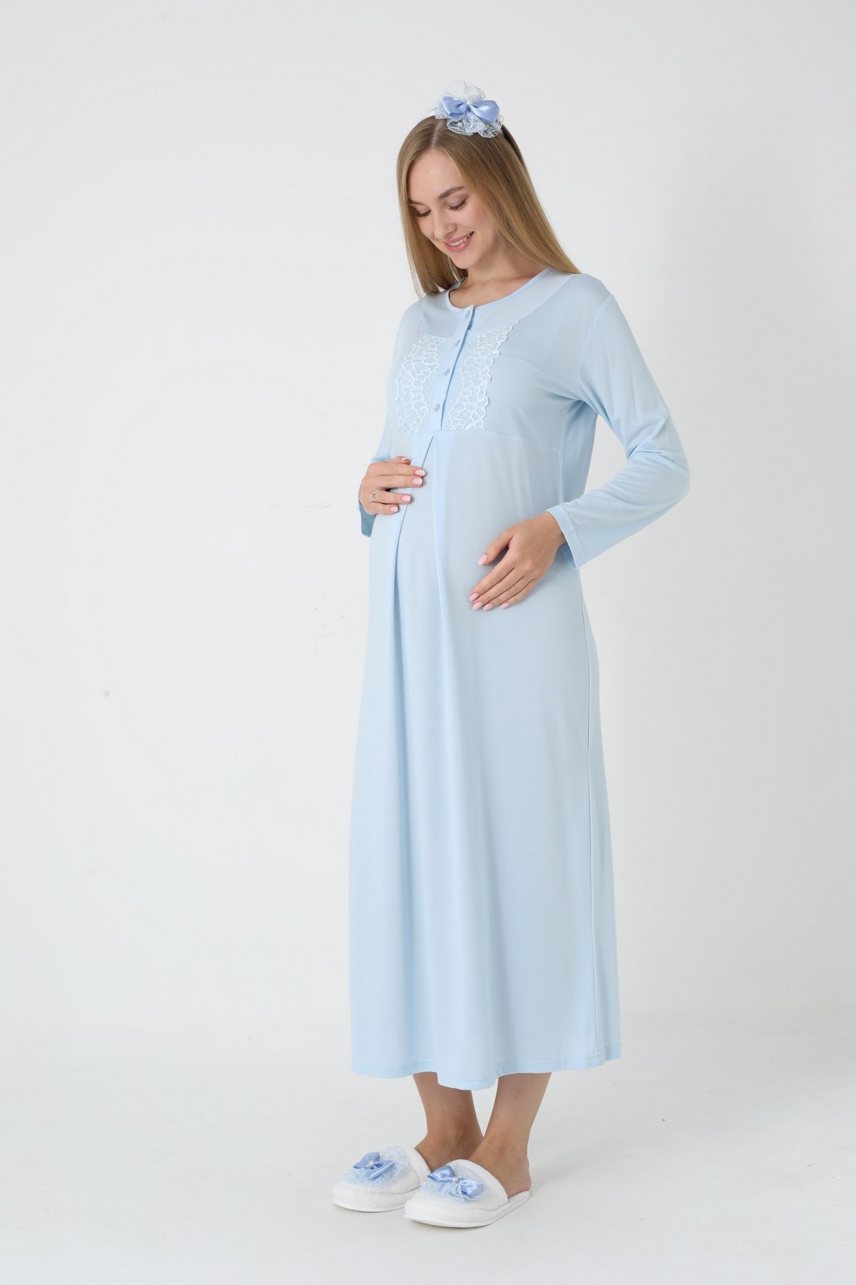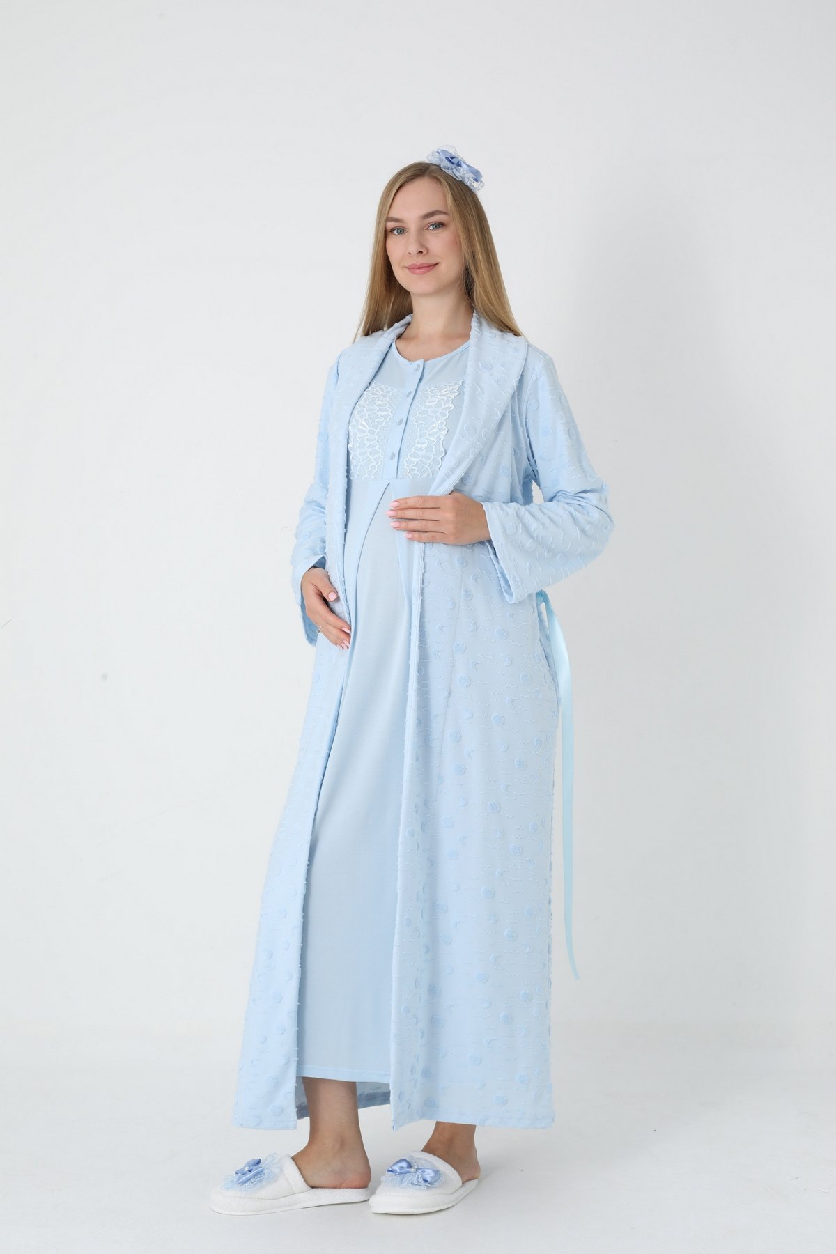 Erdeniz 2312 Bisiklet Yaka Mavi Kapitone Sabahlık ve Viskon Lohusa Gecelik Takımı