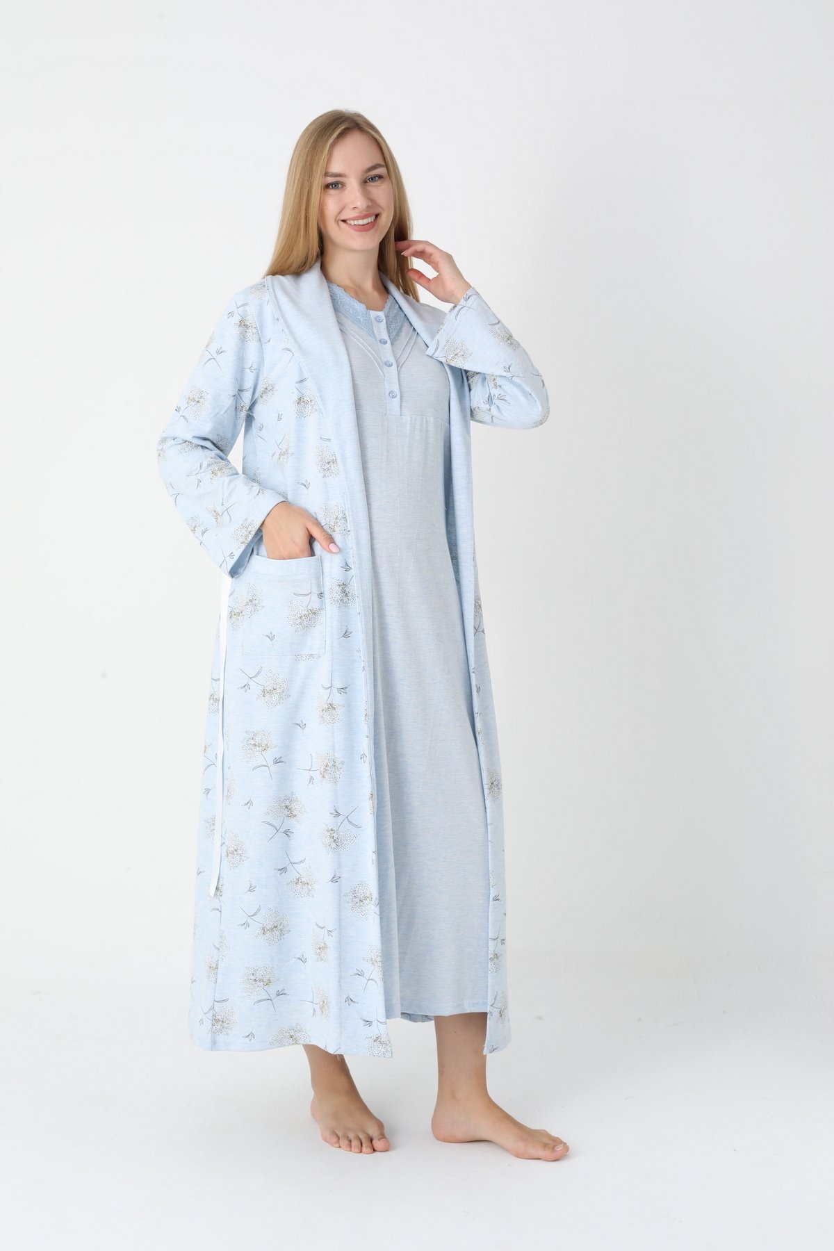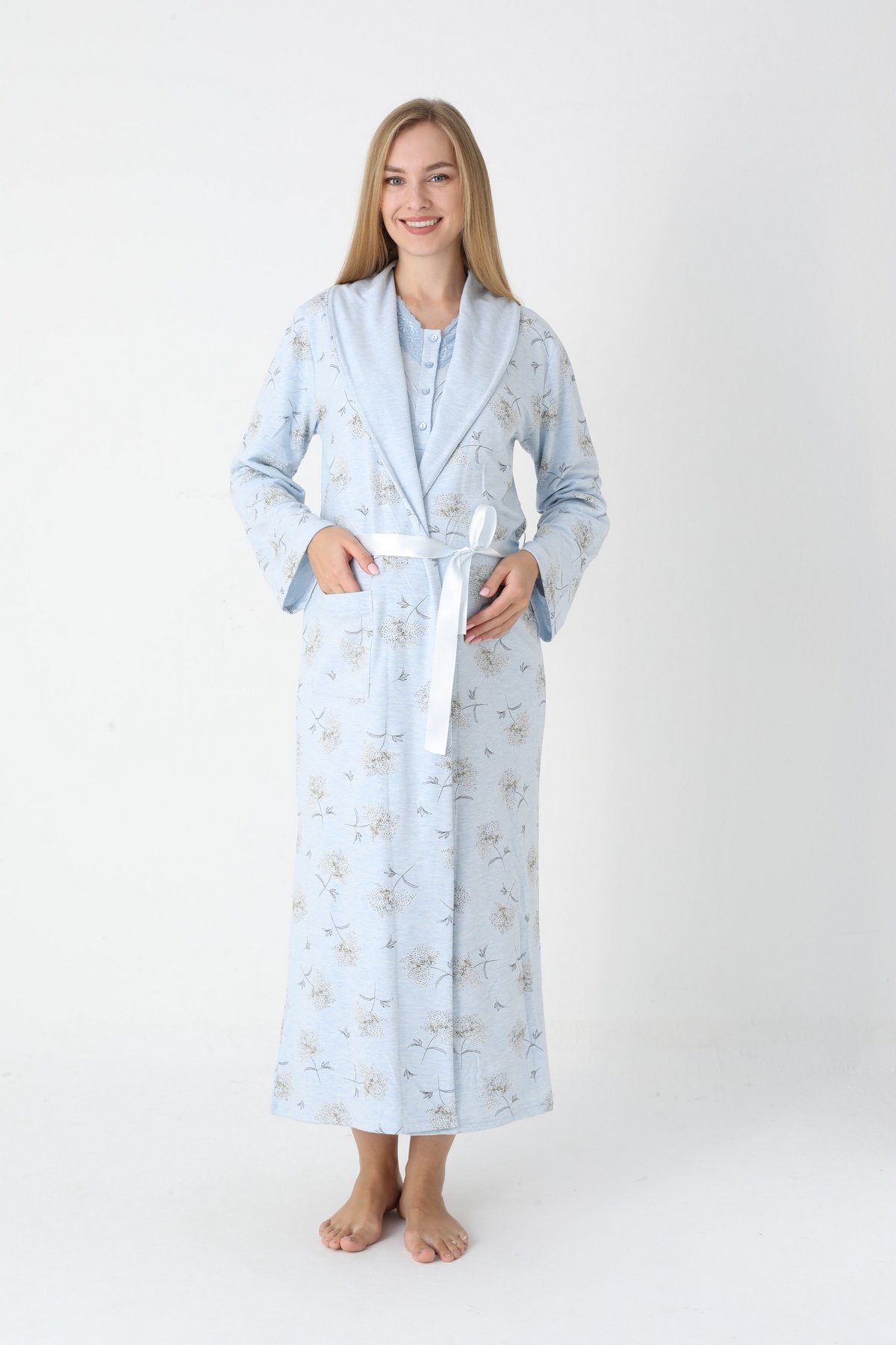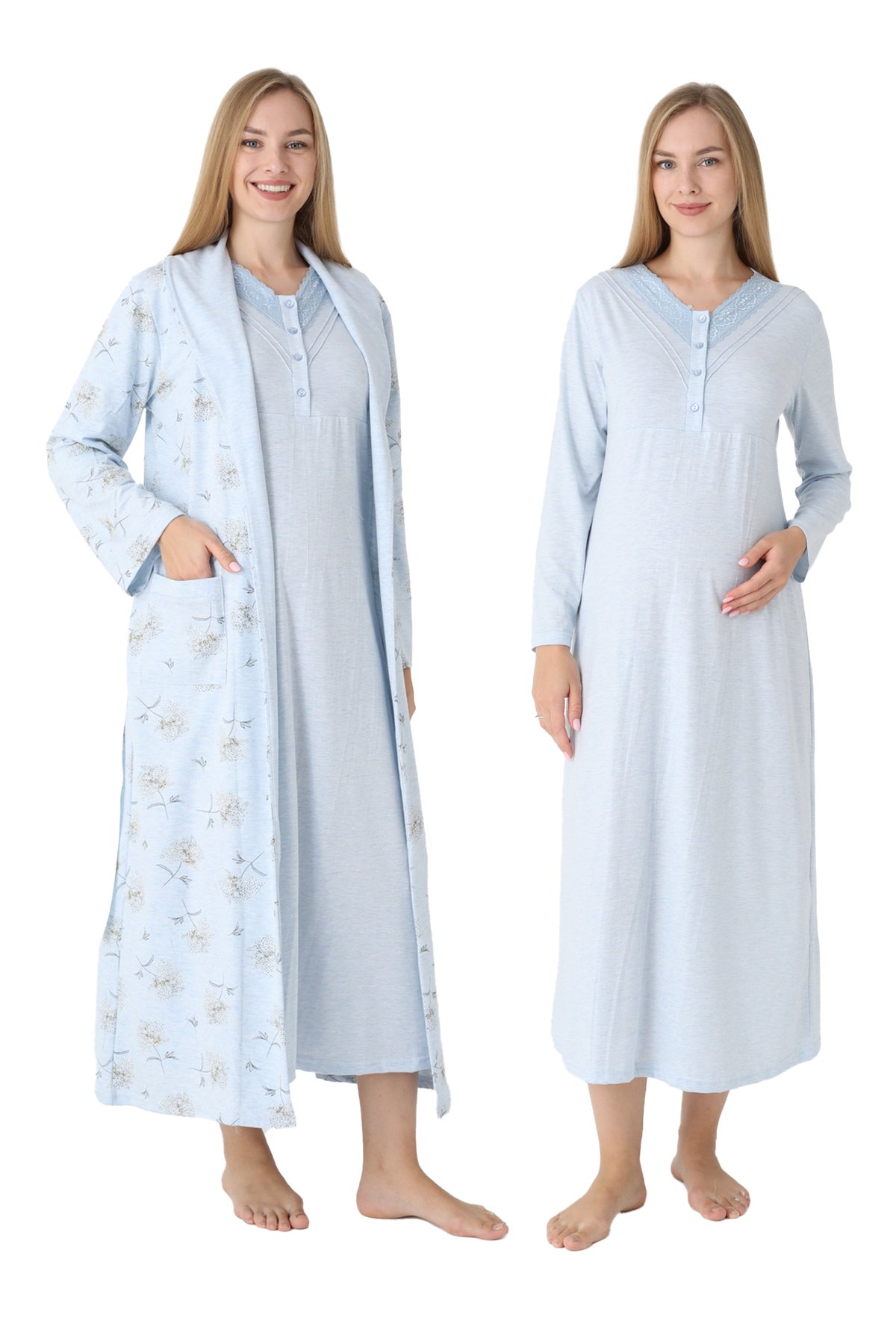 - Ürün İçeriği: Gecelik (düğmeli emzirme özelliği) ve Sabahlık (penye + kuşaklı).