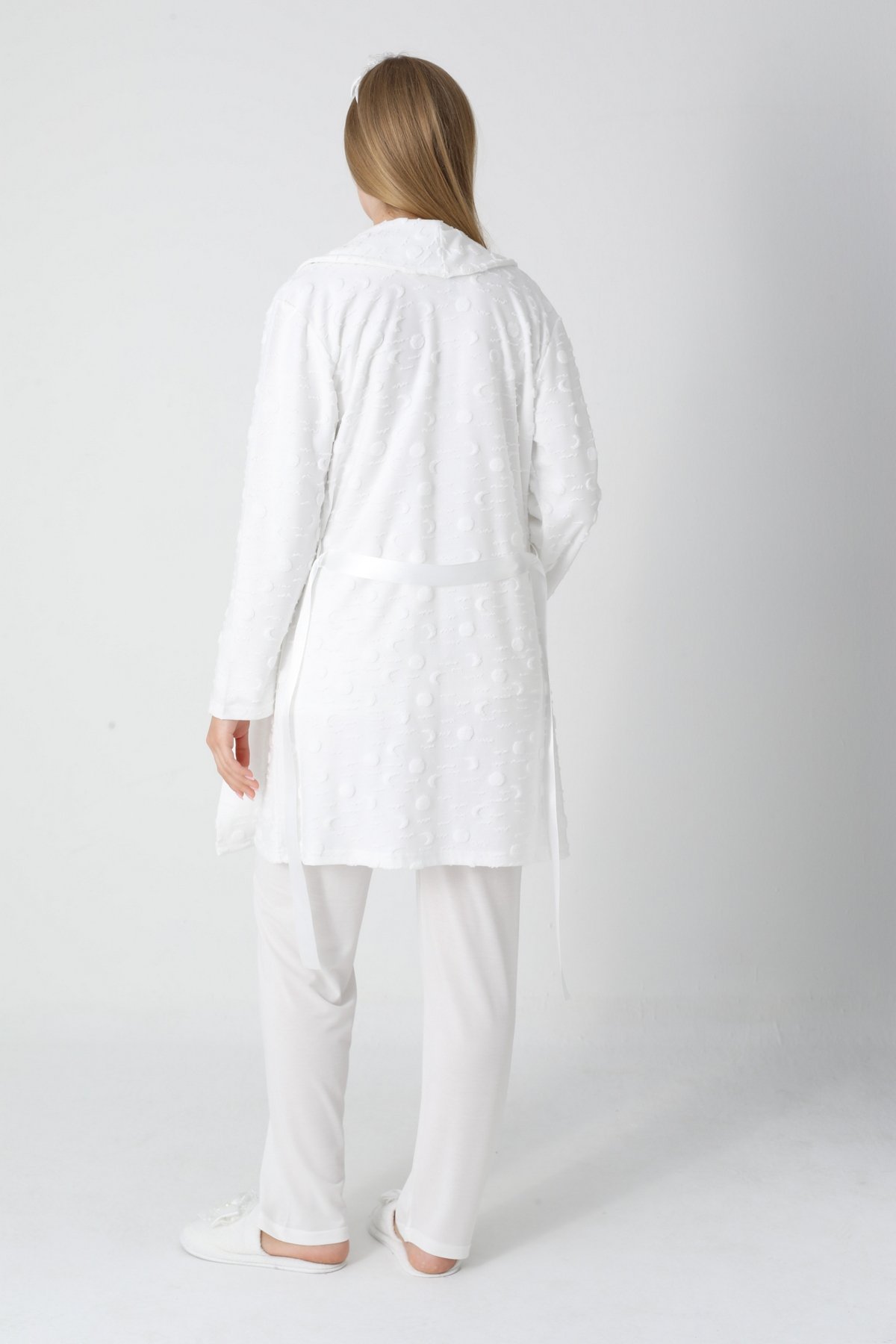 Erdeniz 3454 Kapitone Sabahlıklı ve Viskon Pijama 3’lü Lohusa Takımı