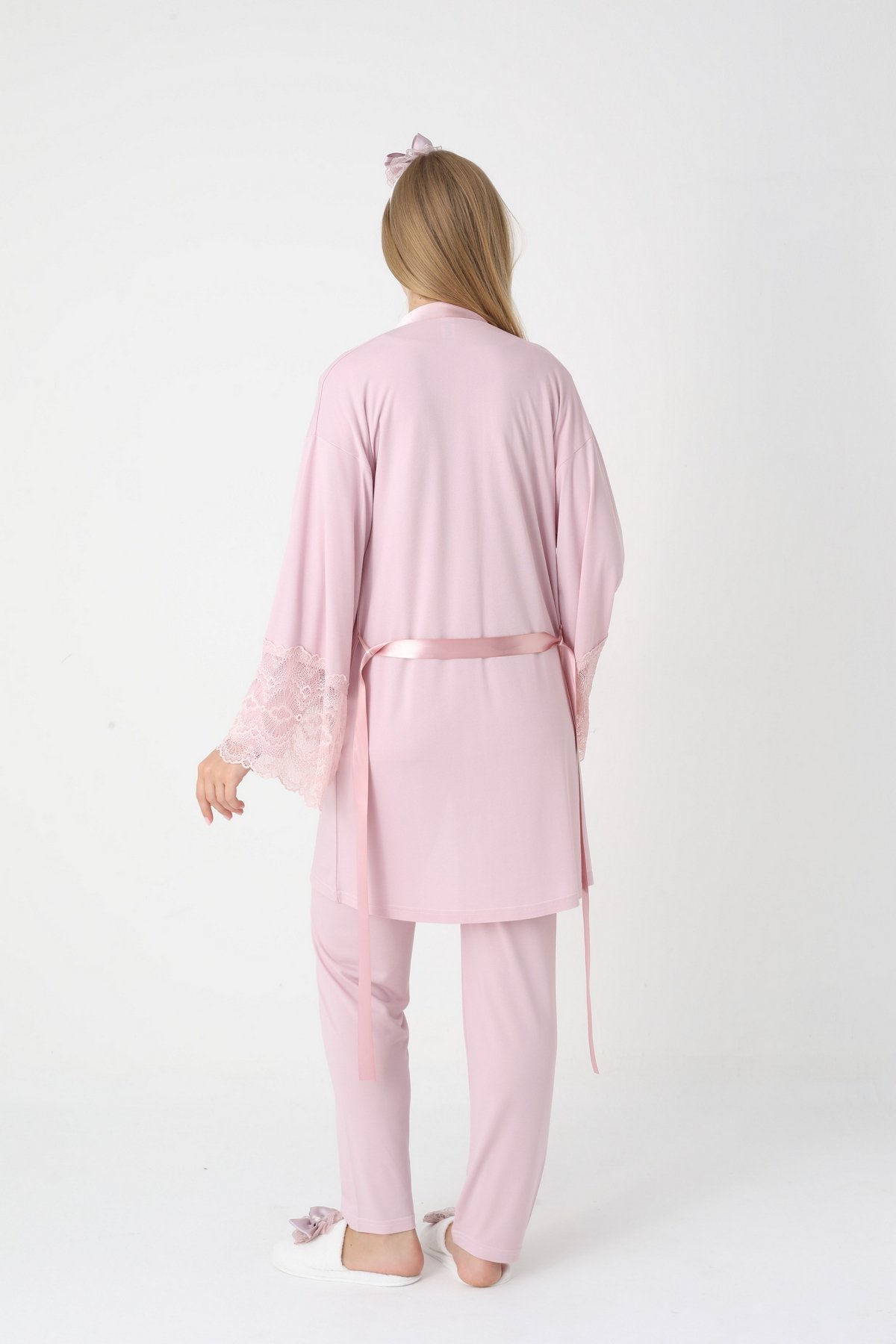 Erdeniz 3444 Dantel Detaylı Sabahlıklı 3’lü Lohusa Pijama Takımı - QuillingSeti.com