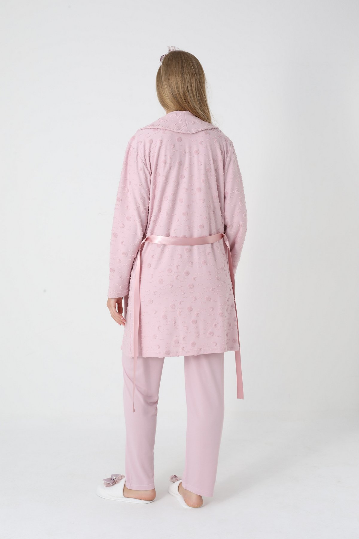 Erdeniz 3454 Kapitone Sabahlıklı ve Viskon Pijama 3’lü Lohusa Takımı