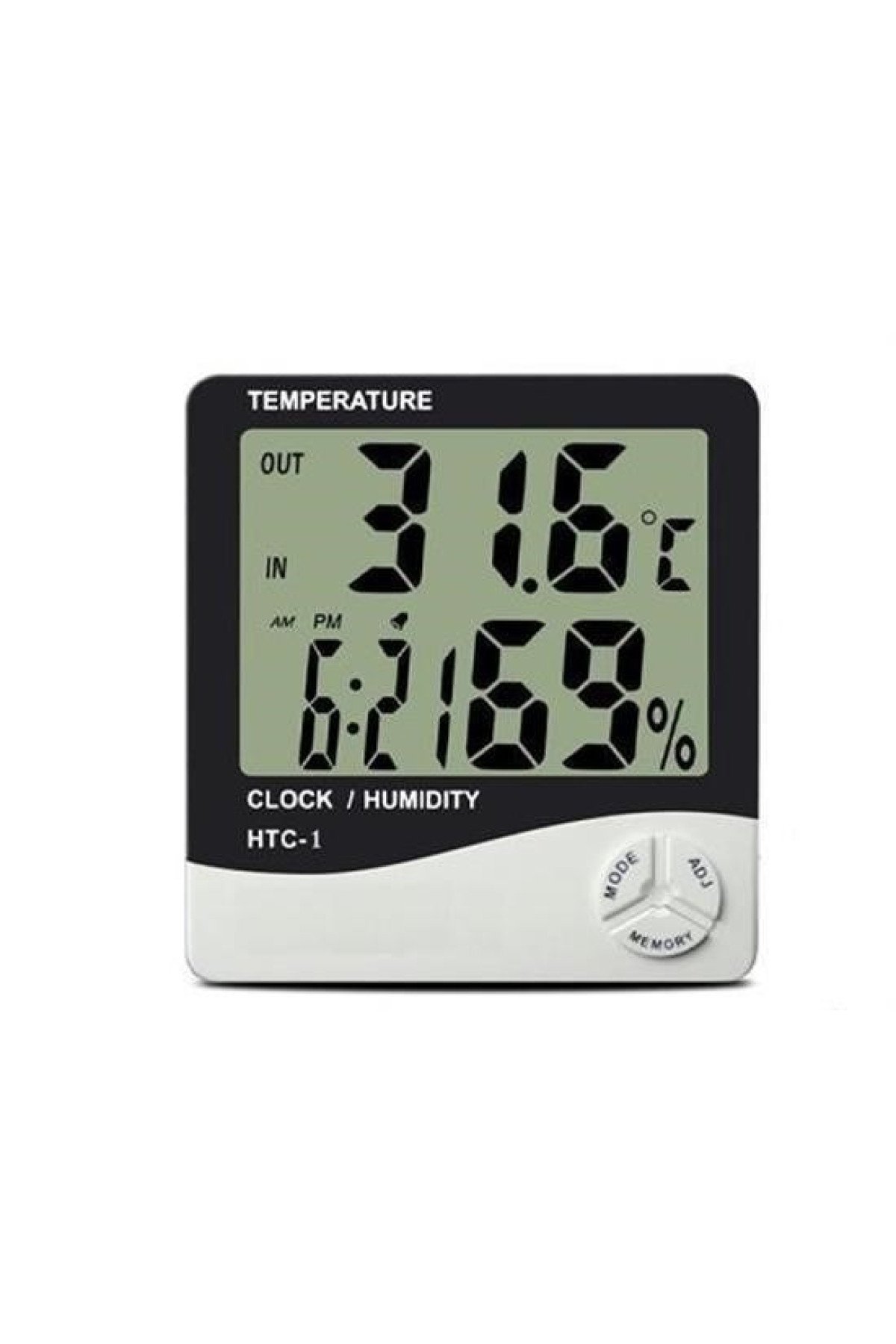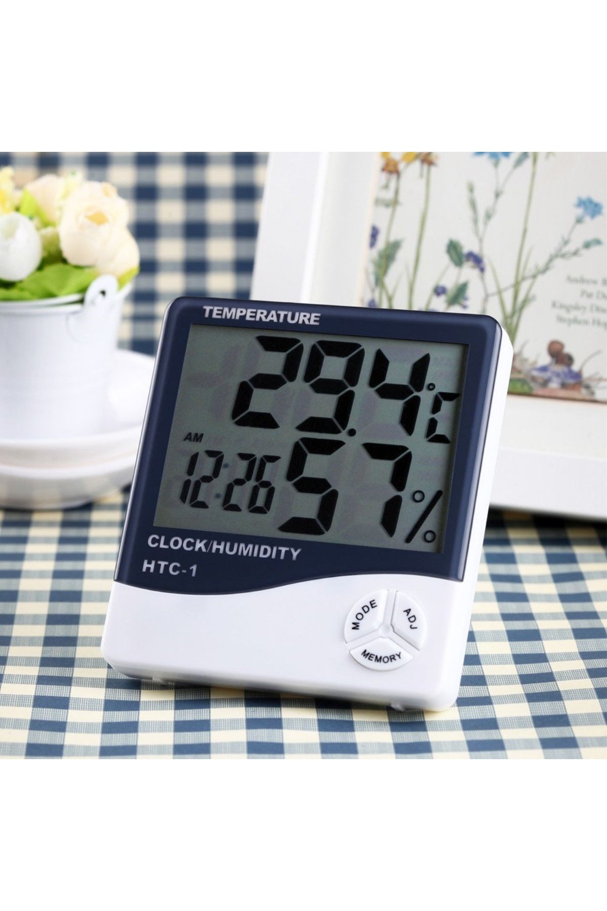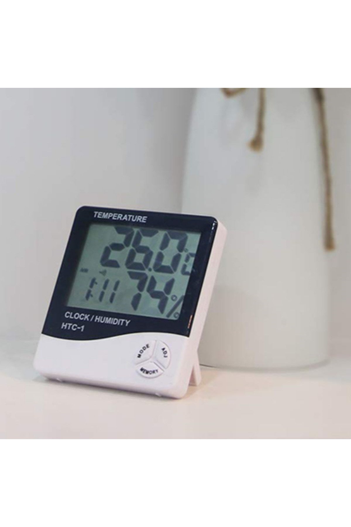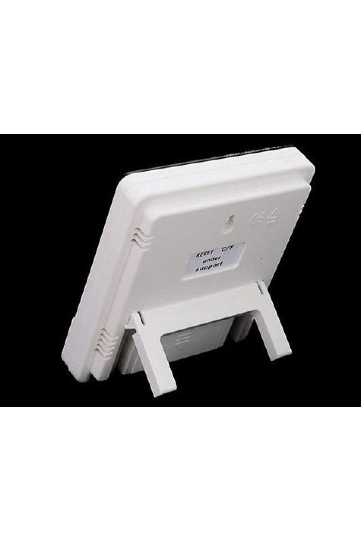 İç ve Dış Ortam Sıcaklığını Ölçebilen LCD Ekran Saat Göstergeli Alarmlı Nem Ölçer Termometre