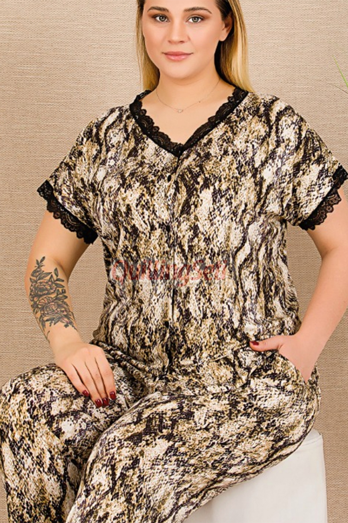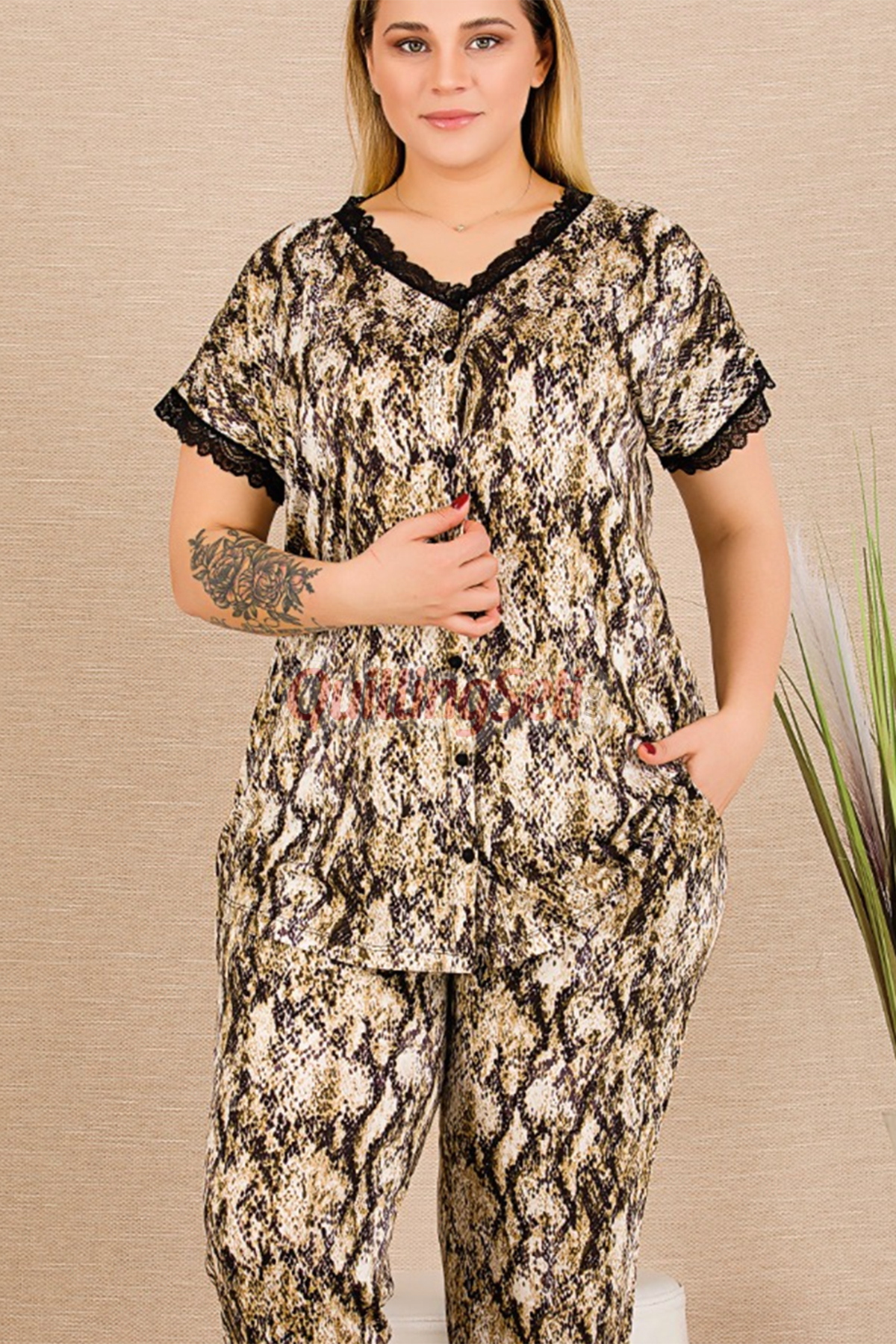 Siyah Renk ve Leopar Desenli Lady 10692 Kadın Büyük Beden Kapri Pijama Takımı