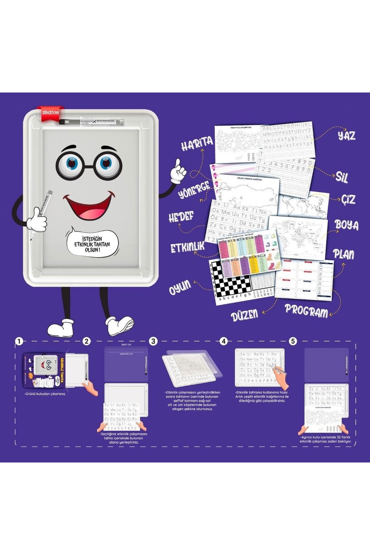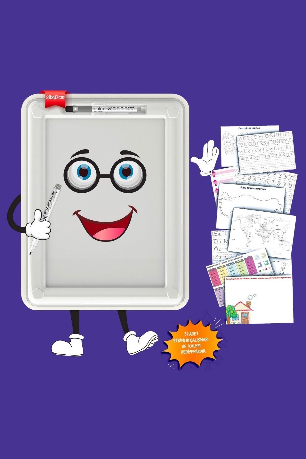 32 Farklı Etkinlikli Kalem ve Silgi Hediyeli Eğitici Sihirli Etkinlik Tahtası